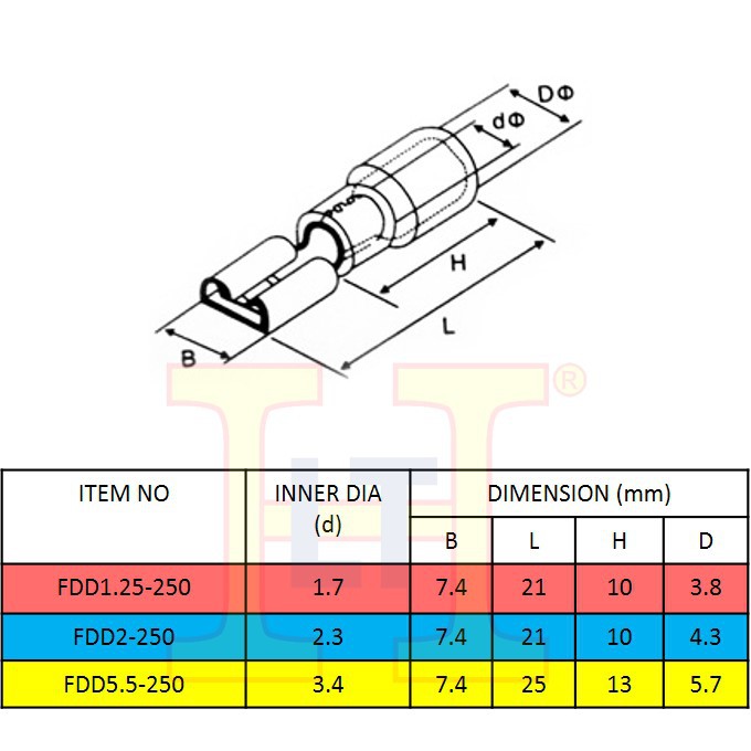 CABLE LUG FLAT FEMALE HALF INSULATED (COPPER) FDD