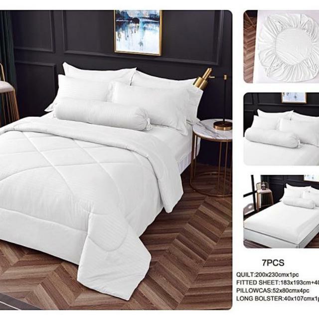 CADAR PREMIUM HOTEL 100% COTTON 1000TC 7 in 1 High Quality Fitted Bedsheet With Comforter Set (Queen/King)