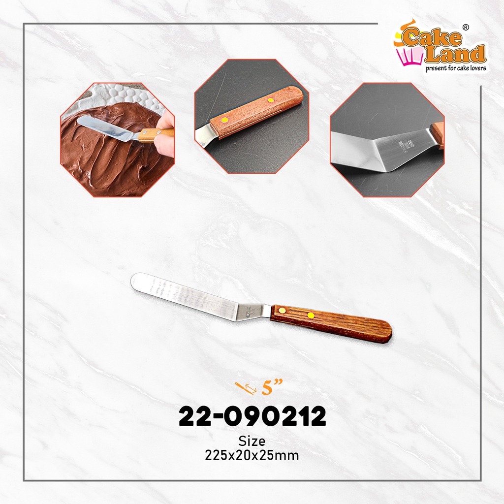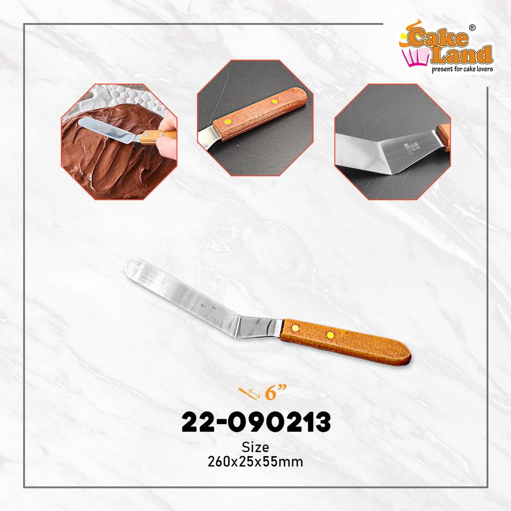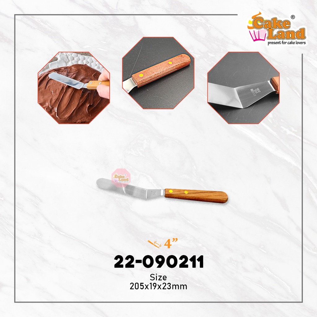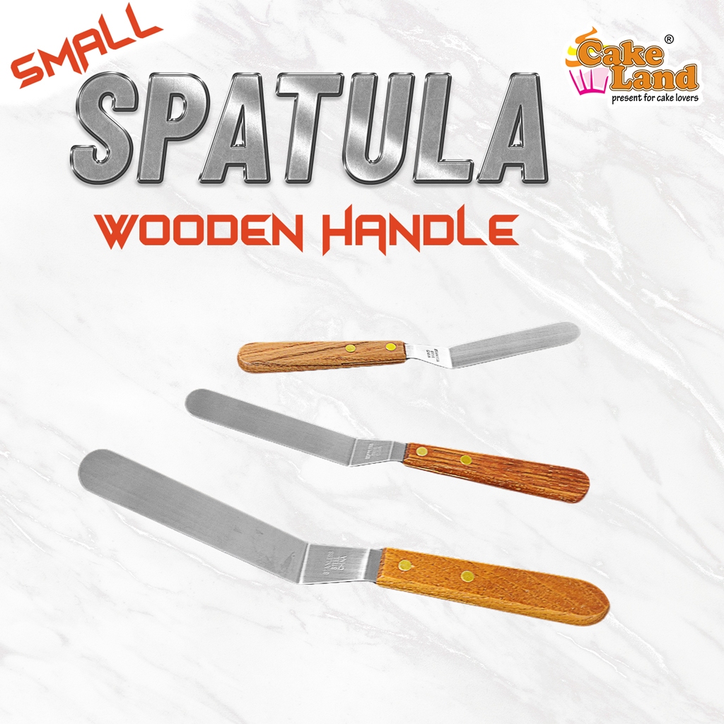 CAKE LAND Small Wooden Handle Stainless Steel Curve Cake Spatula (4"/5"/6")