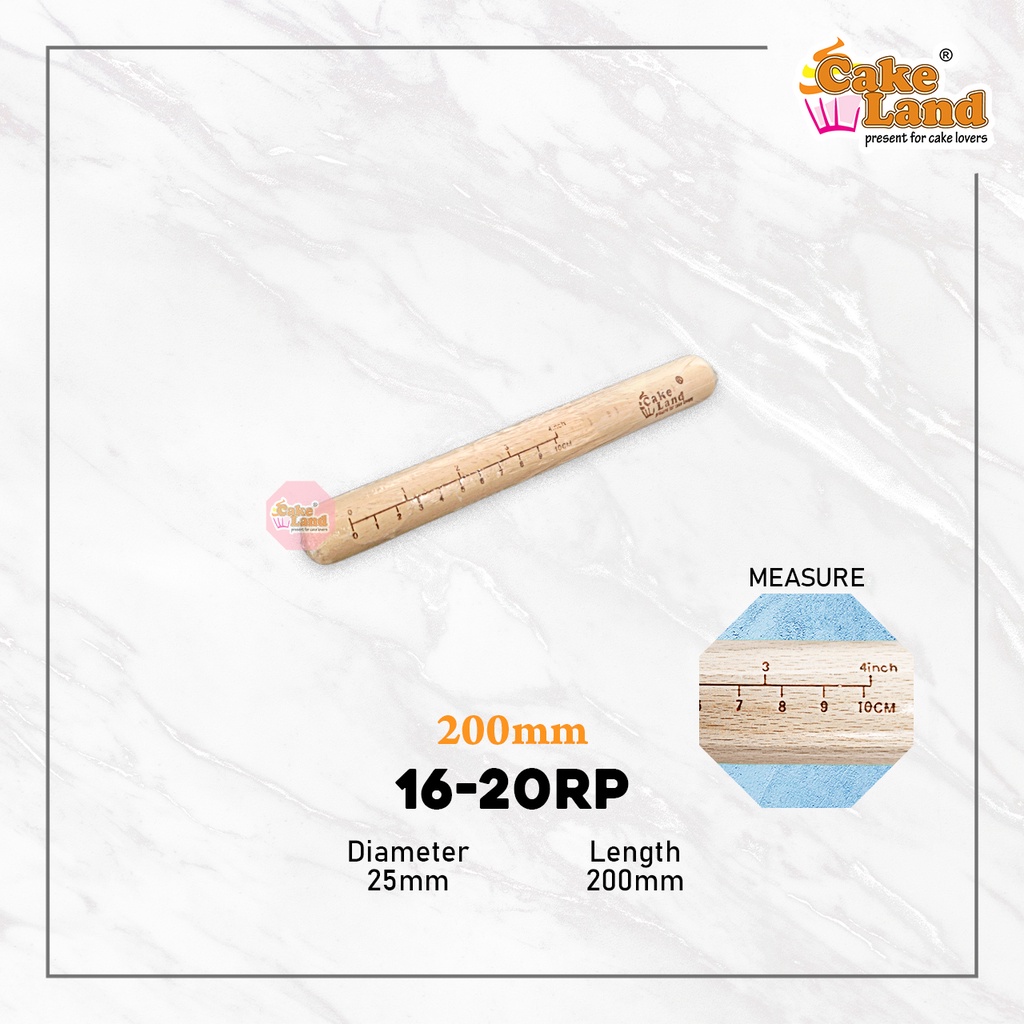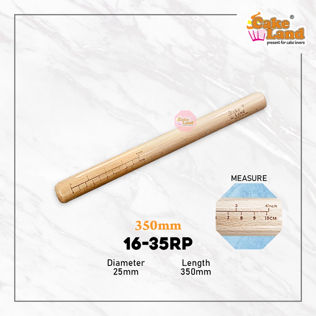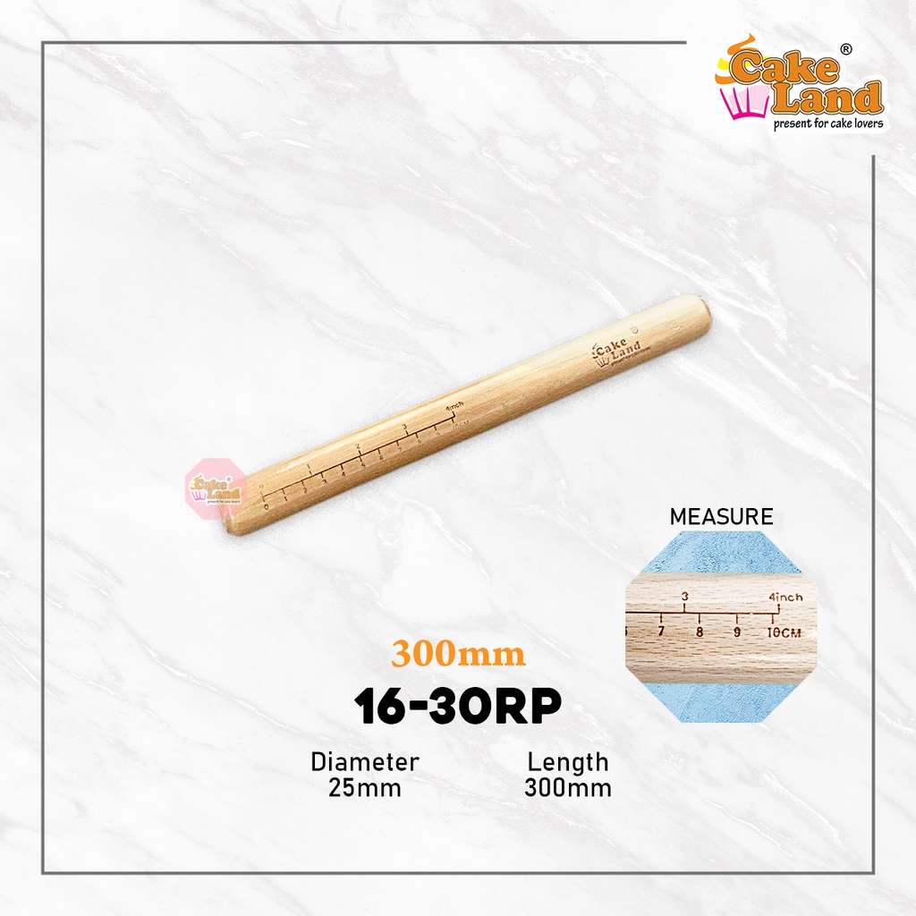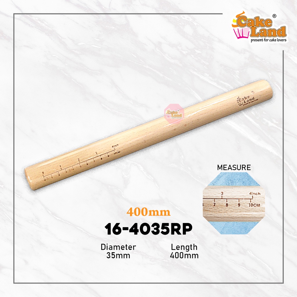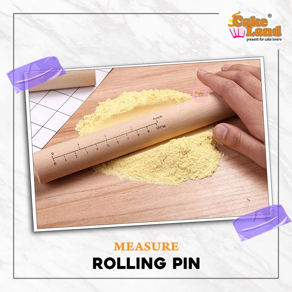 CAKE LAND Wooden Rolling Pin With Measure (200mm/300mm/350mm/400mm)