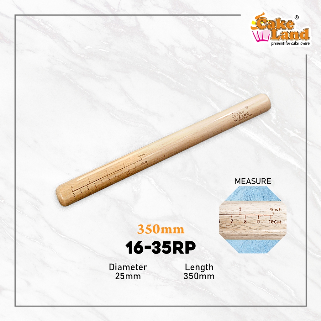CAKE LAND Wooden Rolling Pin With Measure - 200mm / 300mm / 350mm / 380mm