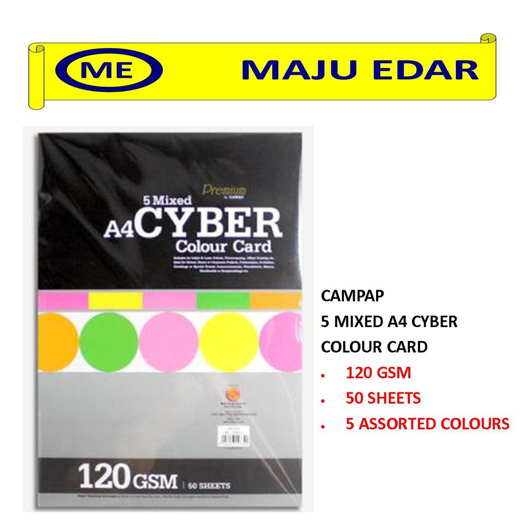 CAMPAP 5 MIXED A4 CYBER COLOUR CARD 120GSM 50 SHEETS/ KERTAS WARNA A4/ A4 COLOUR PAPER