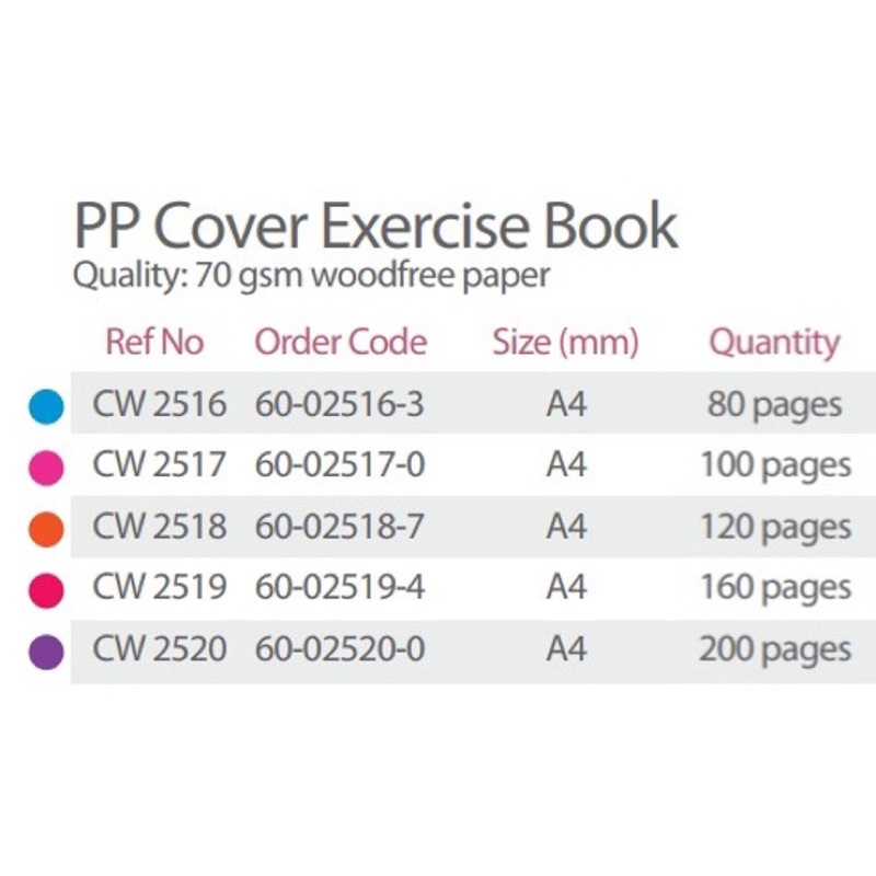 CAMPAP Write-On A4 Plastic PP Cover Exercise Book 70gsm 80,100,120,160,200Pages(CW2516/CW2517/CW2518/CW2519/CW2520)