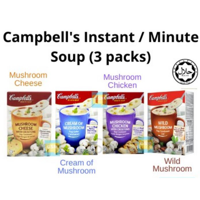 CAMPBELL'S - Mushroom Instant Soup (ASSORTED FLAVORS - 3 PACKS) Sup Wild Mushroom/ Cream of Chicken/ Mushroom Chicken