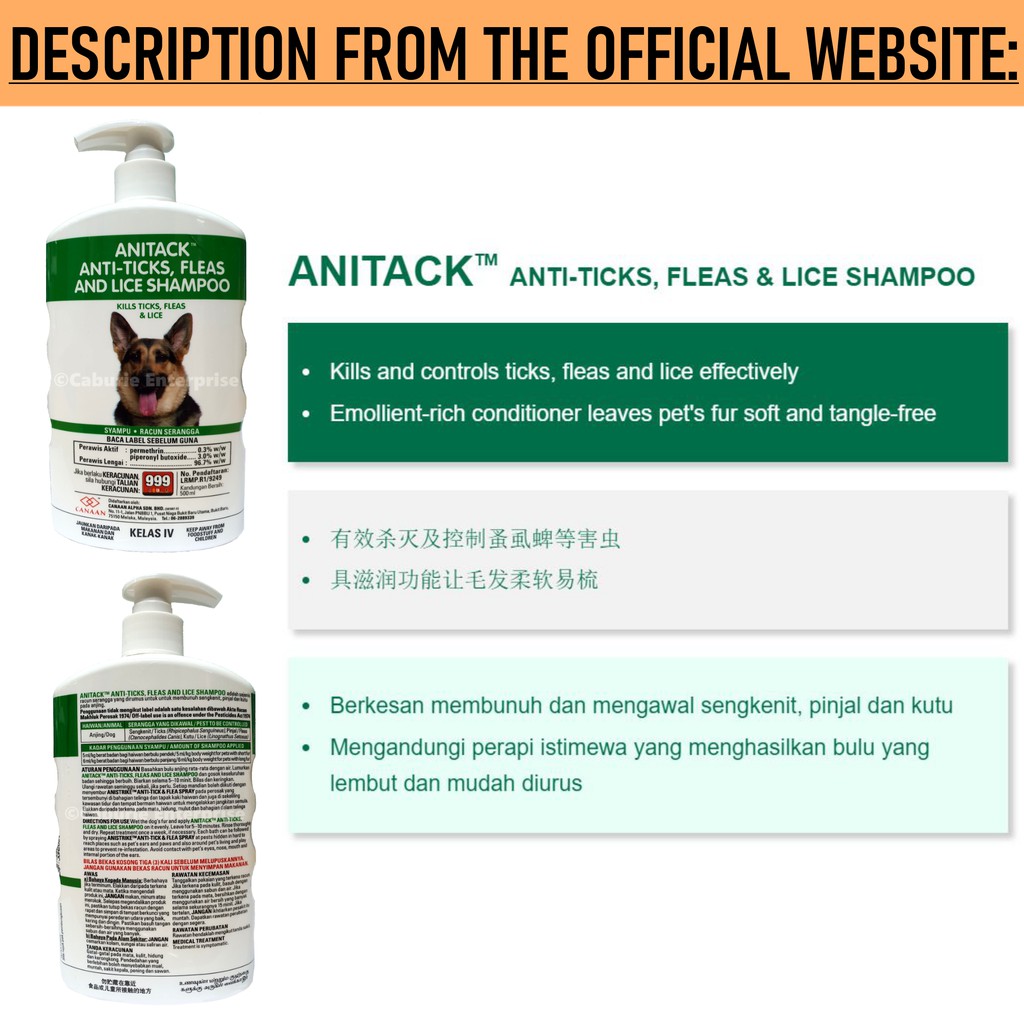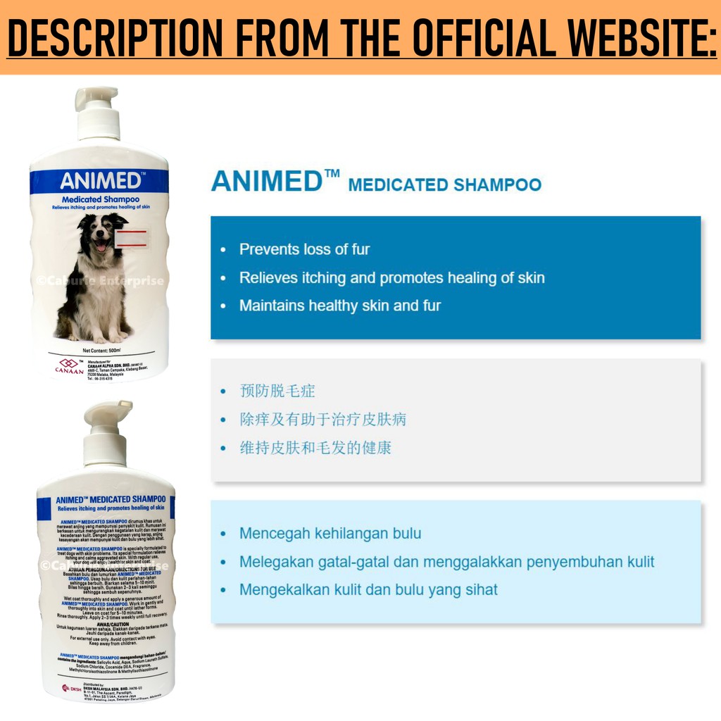 CANAAN: Pet Cat & Dog Shampoos (500ml) - Aniclean/Animed/Anipro/Anitack/Aniflea. Medicated for skin problem 狗猫洗毛剂