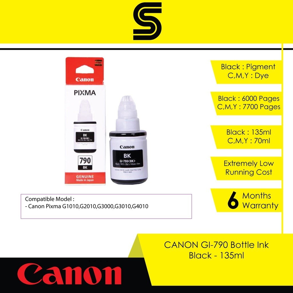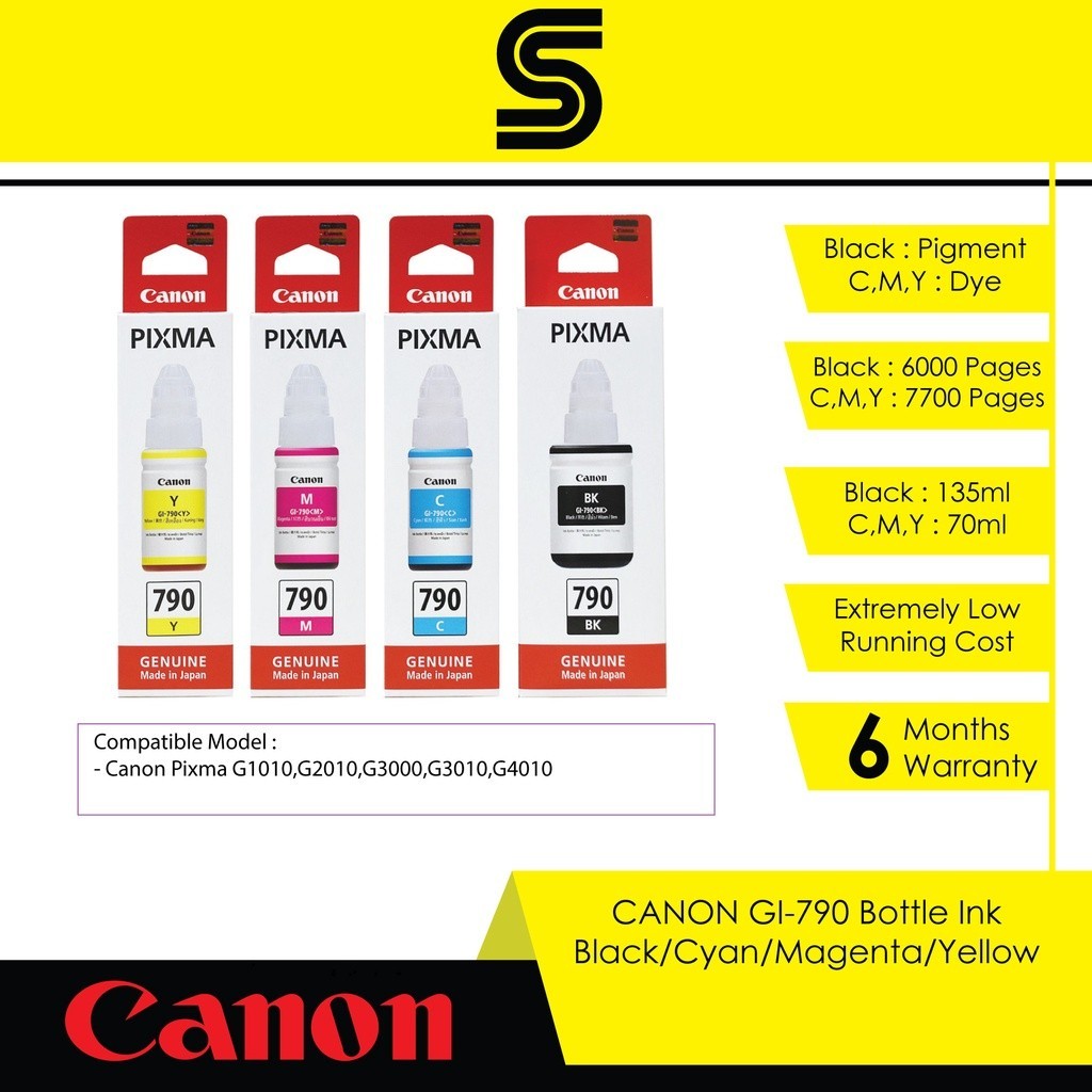 CANON GI-790 Ink Bottle - Black/Cyan/Magenta/Yellow - G1010,G2010,G3000,G3010,G4010