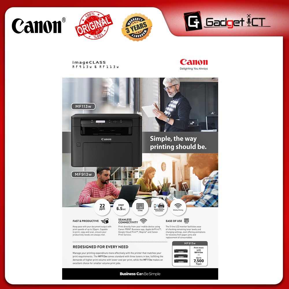 CANON IMAGECLASS MF113W ALL-IN-ONE MONO LASER PRINTER/PRINT/ SCAN/COPY/WIFI/3 YEARS ONSITE WARRANTY