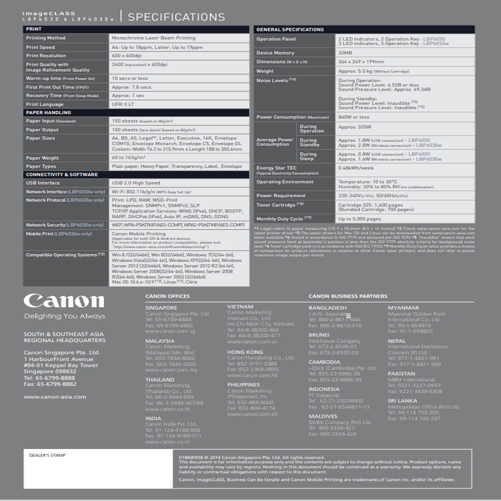 CANON LBP6030 LBP 6030 / LBP6030W LBP 6030W WIFI WIRELESS LASER PRINTER MONOCHROME 6030
