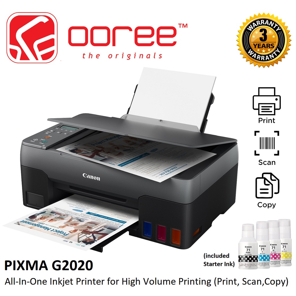 CANON PIXMA G2010 / PIXMA G2020 REFILLABLE INK TANK ALL IN ONE INKJET PRINTER SUPPORT BORDELESS (PRINT, SCAN, COPY)