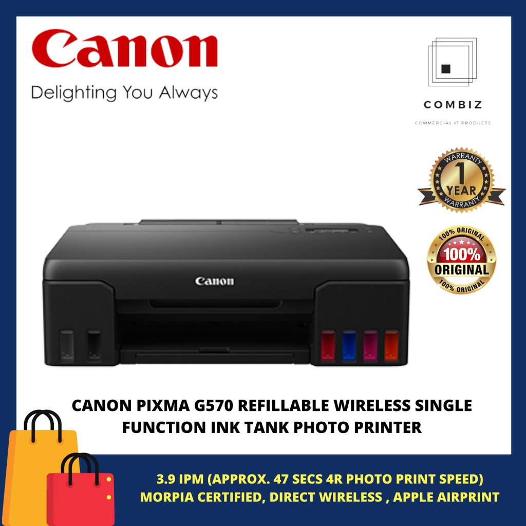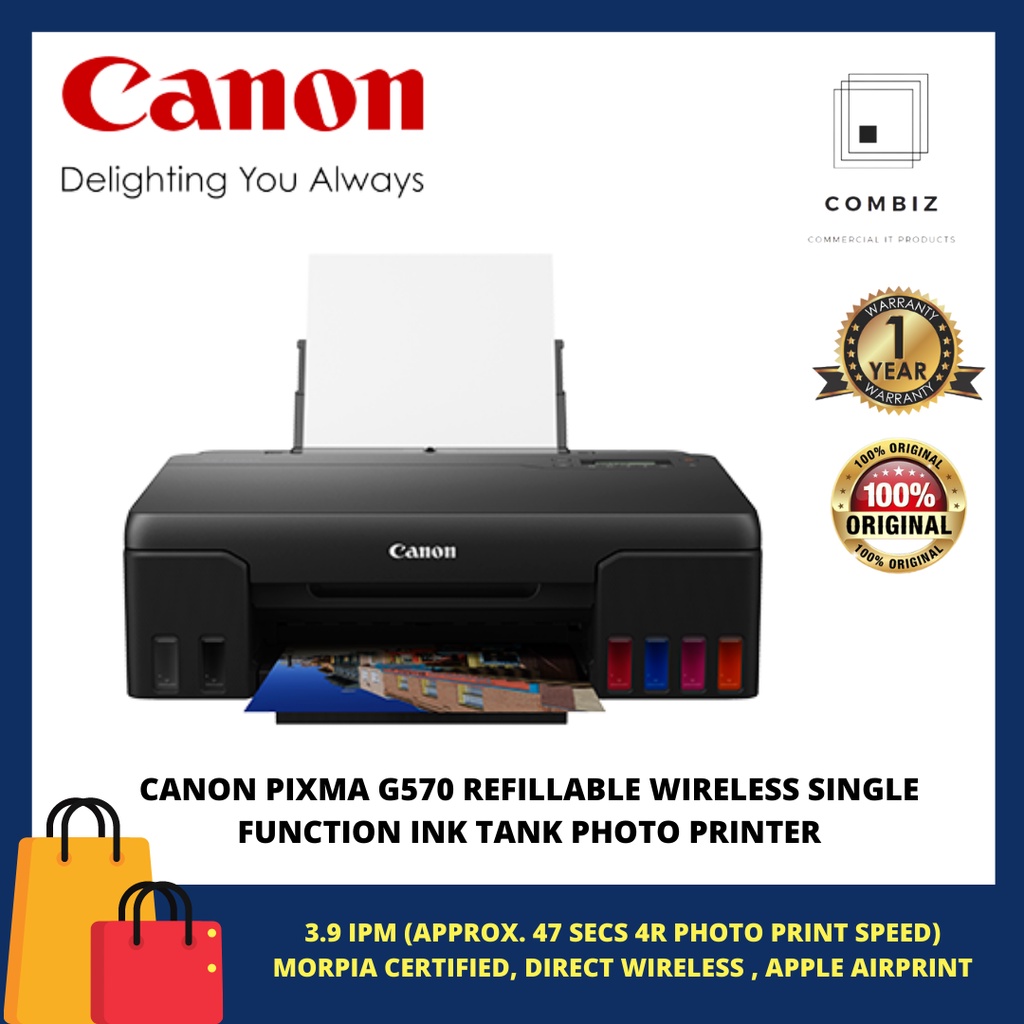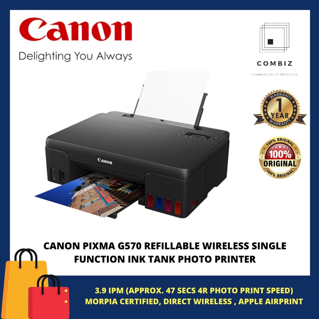 CANON PIXMA G570 REFILLABLE WIRELESS SINGLE FUNCTION INK TANK FOR HIGH VOLUME QUALITY PHOTO PRINTING PHOTO PRINTER