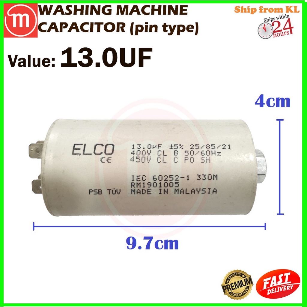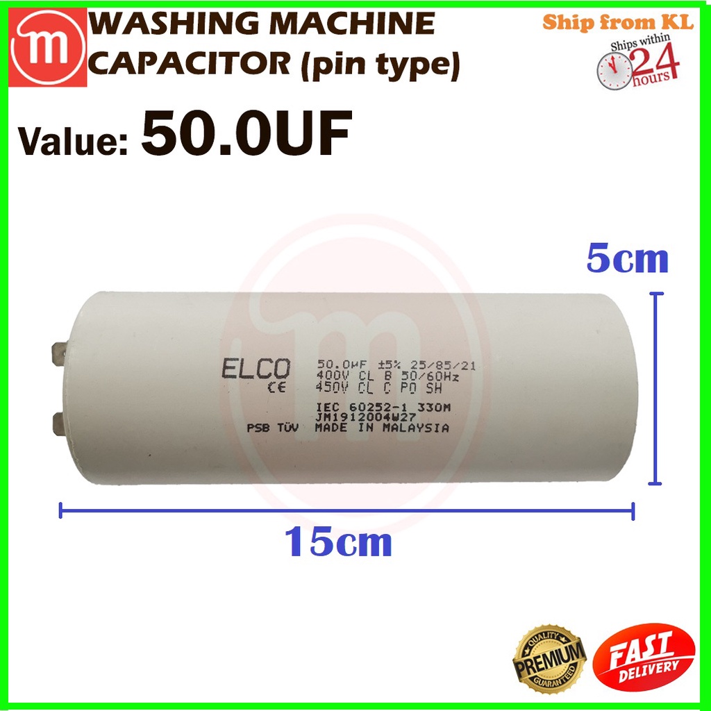 CAPACITOR WASHING MACHINE ELCO 450VAC EC CAP PIN TYPE (4UF - 80UF)