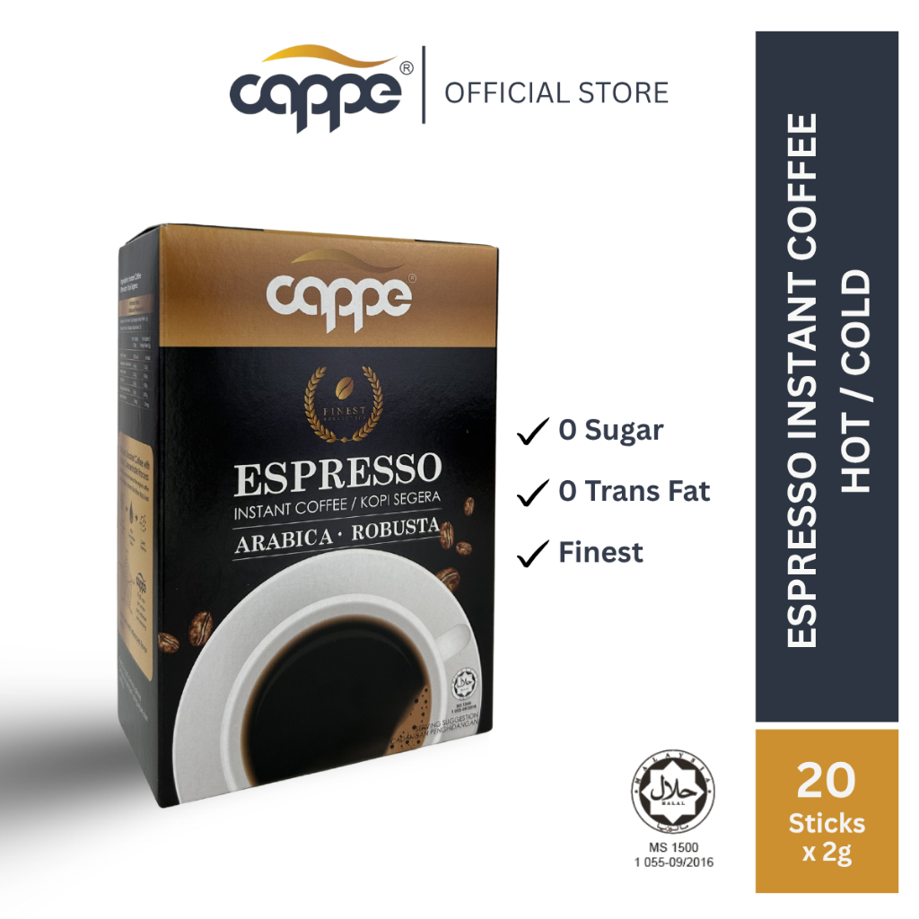 CAPPE ESPRESSO [2g x 20] Sugar-Free Instant Coffee Kopi Segera Tanpa Gula | Arabica Robusta | Halal | Cold Brew | Diet
