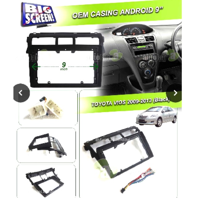 CAR AUDIO PLAYER CASING ANDROID 9 INCH FOR TOYOTA VIOS NCP93 2007-2012 BLACK COLOUR