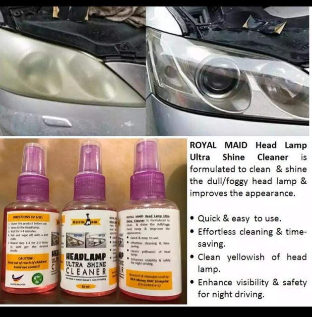 CAR HEAD LAMP ULTRA SHINE CLEANER by Royal Maid Pengilat dan Pencui Lampu kereta yang kusam , lamp restoration repair