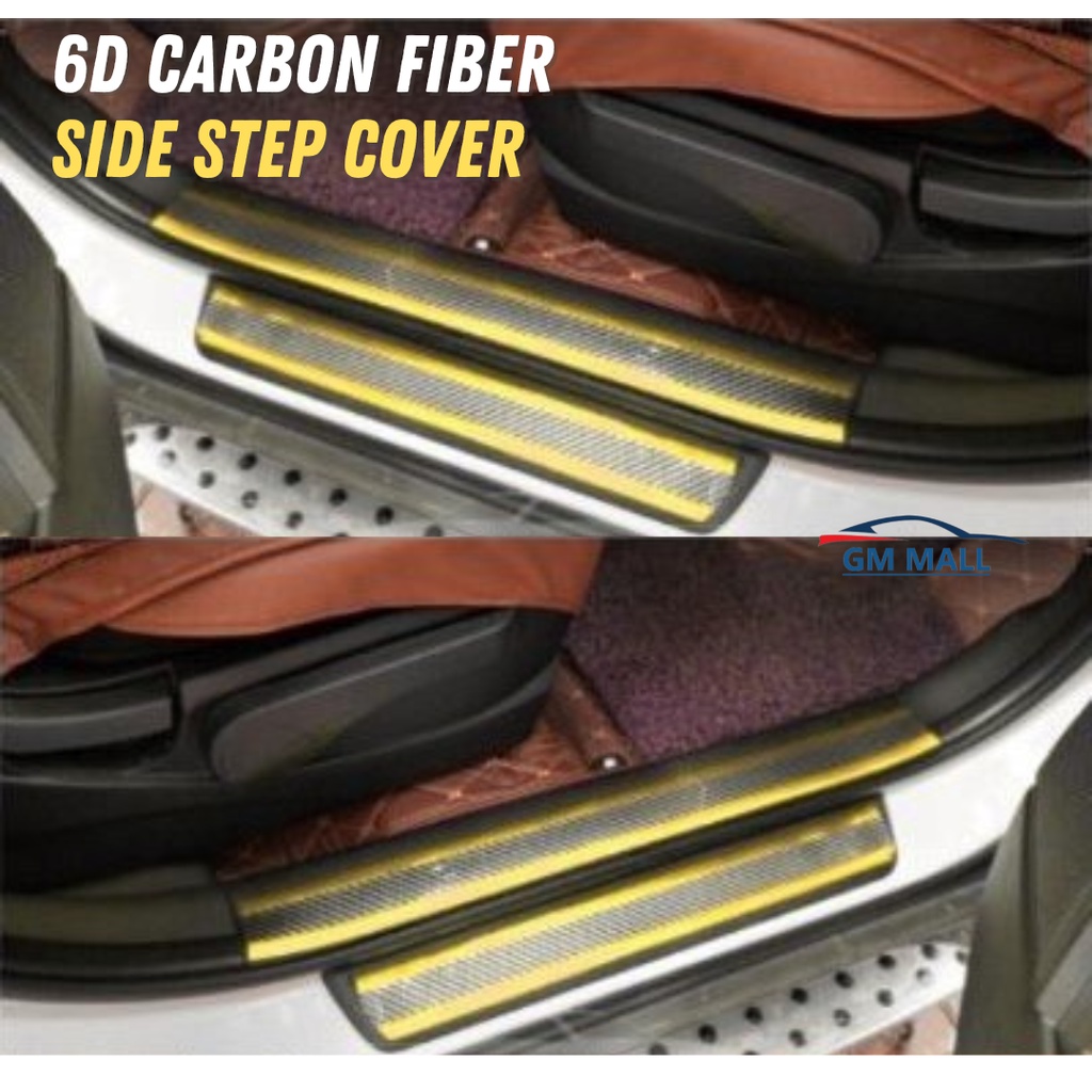 CAR SIDE STEP STICKER Carbon Door Sill Plate Side Foot Door Cover Pelekat Kaki Pijak Pintu Kereta