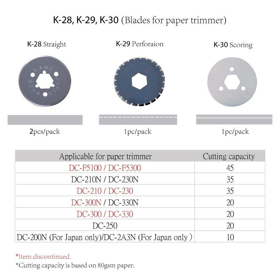 CARL Cutting Blade K-28 Trimmer straight blade 2 blades per pack / K-29 perforation blade 1 blade per pack