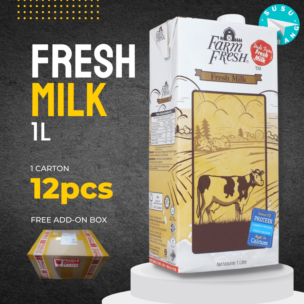 CARTON | 12pcs Fresh Milk UHT 1L (Susu Fresh) by Farm Fresh (MAX 1 UNIT PER ORDER)