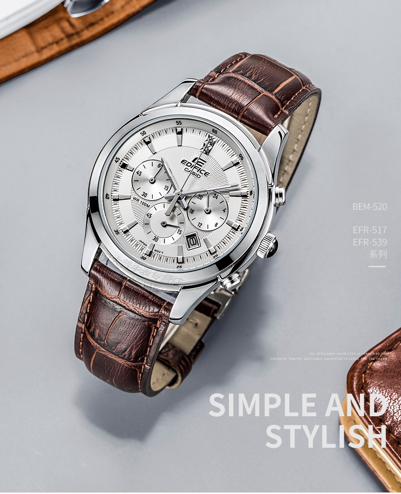 CASIO EDIFICE EFR-517L Fashion Analog Men Watch Water Resistance Chronograph Elegant Simple Design Jam Lelaki
