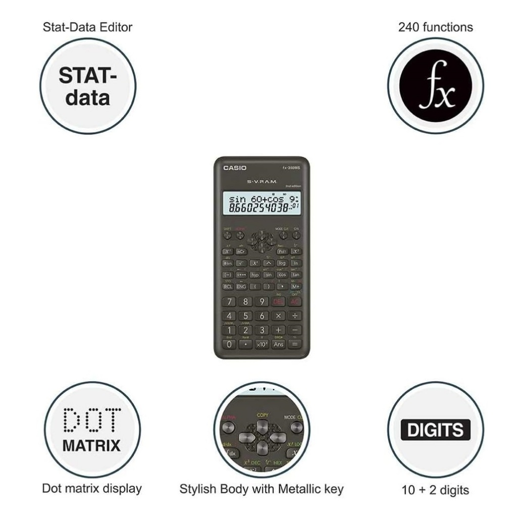 CASIO FX-350MS-2 STANDARD SCIENTIFIC CALCULATOR (2ND EDITION) WITH 2 LINE DISPLAY, 240 FUNCTIONS