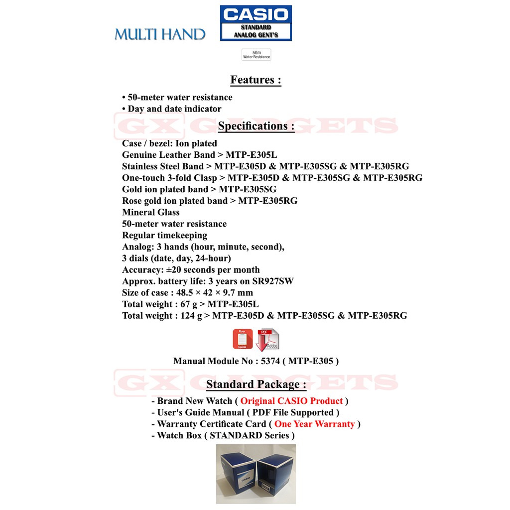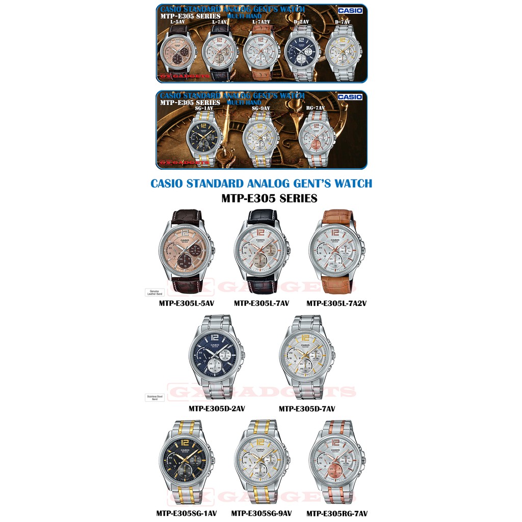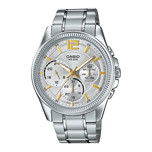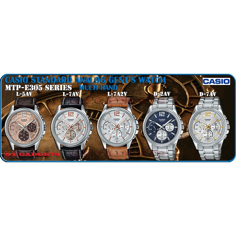 CASIO MTP-E305D-7AV STANDARD ANALOG GENTS WATCH MULTI HAND S. STEEL MTP-E305