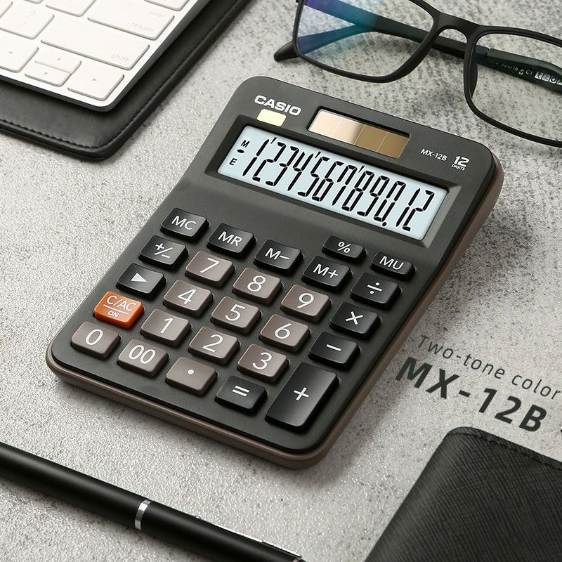 CASIO MX-12B Mini Desk Type Calculator black, white, pink, light blue and green