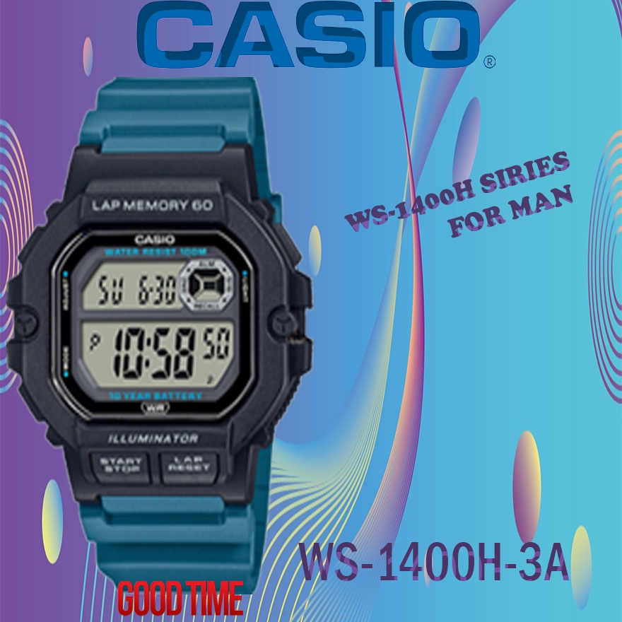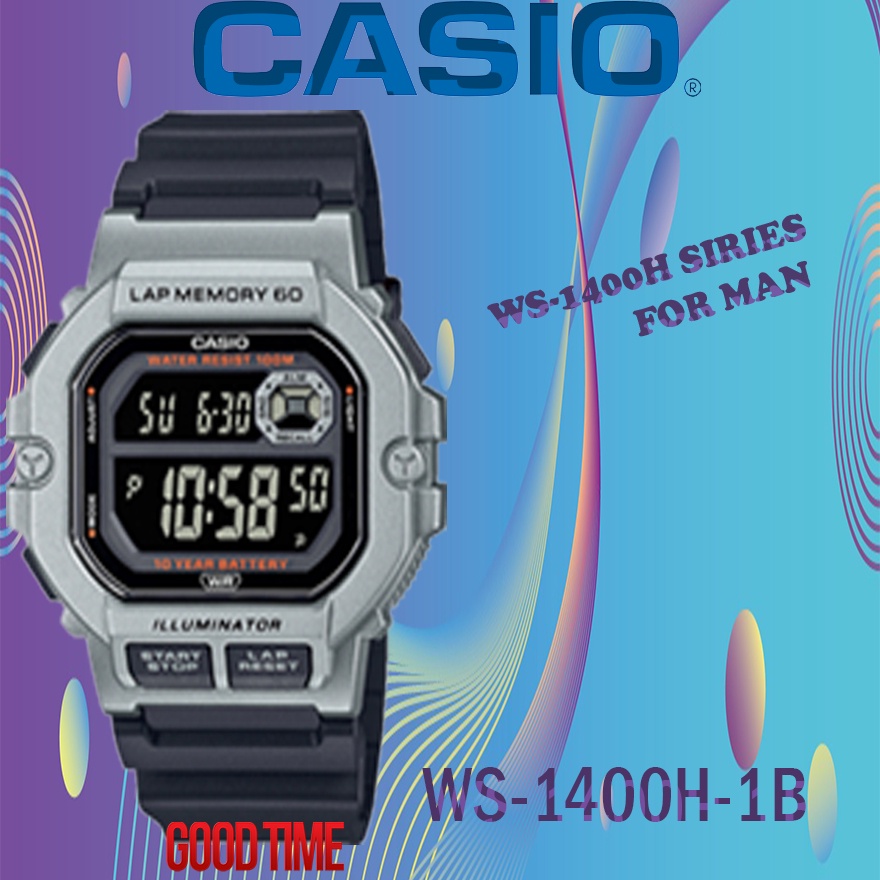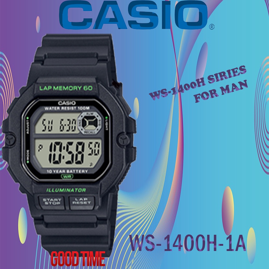 CASIO ORIGINAL WS-1400H LAP MEMORY MEN WATCH JAM TANGAN LELAKI CASIO ORIGINAL CASIO WATCH FOR MEN (2 YEARS WARRANTY)