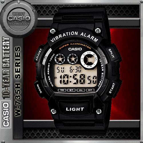 CASIO W-735H-1AV / W-735H-1A / W-735H VIBRATION ALARM WATCH 100% ORIGINAL