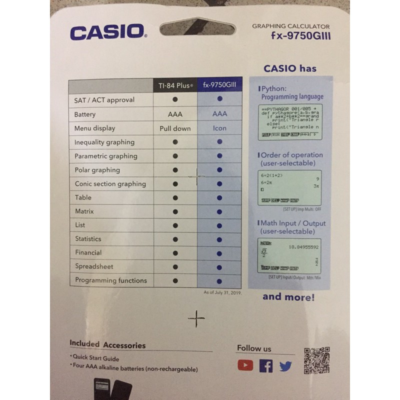 CASIO fx-9750GIII Graphics calculator phyton edition