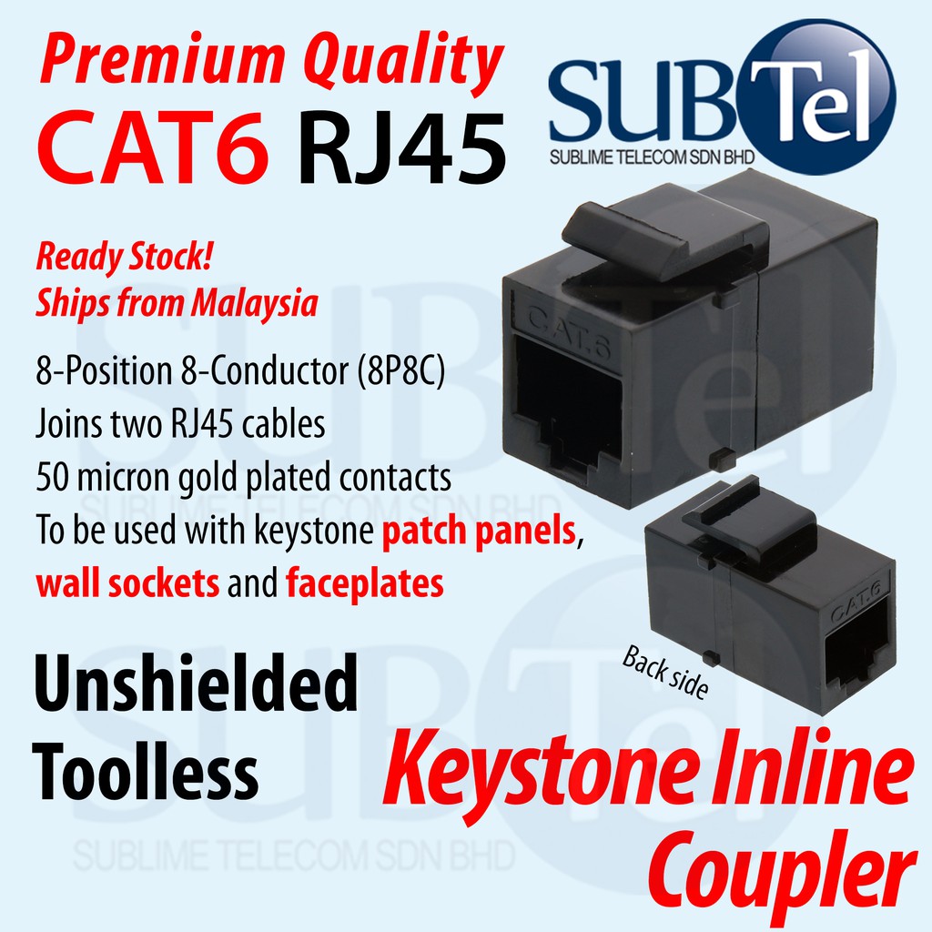 CAT6 CAT6A RJ45 Keystone Jack Inline Coupler Module Straigh Through LAN Cable Network for Wall Faceplate Patch Panel PoE