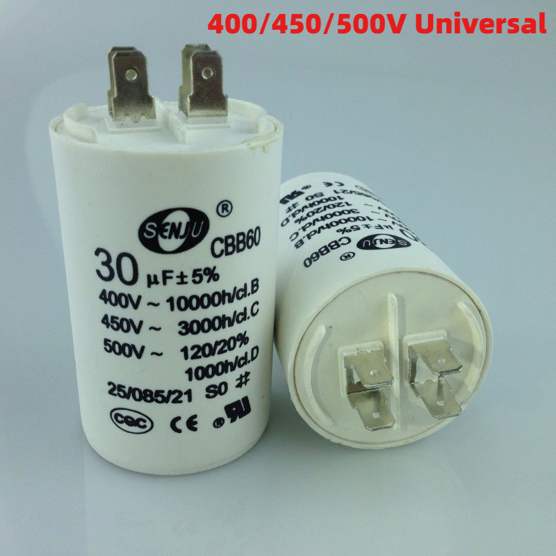 CBB60 Capacitor 450VAC 4Pin Double Insert 50/60HZ Electric Replacement Start Run Capacitor for Air Compressor Water Pump Motor