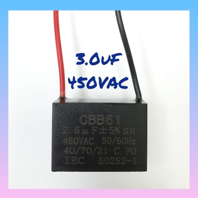 CBB61 Fan Capacitor 3uF 450VAC Square type