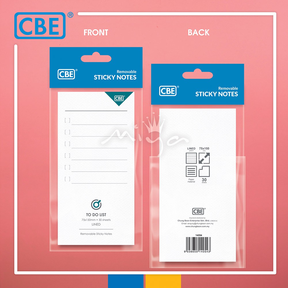 CBE 14054 Removable Sticky Notes - 75 x150mm (30sheets) -TO DO LIST