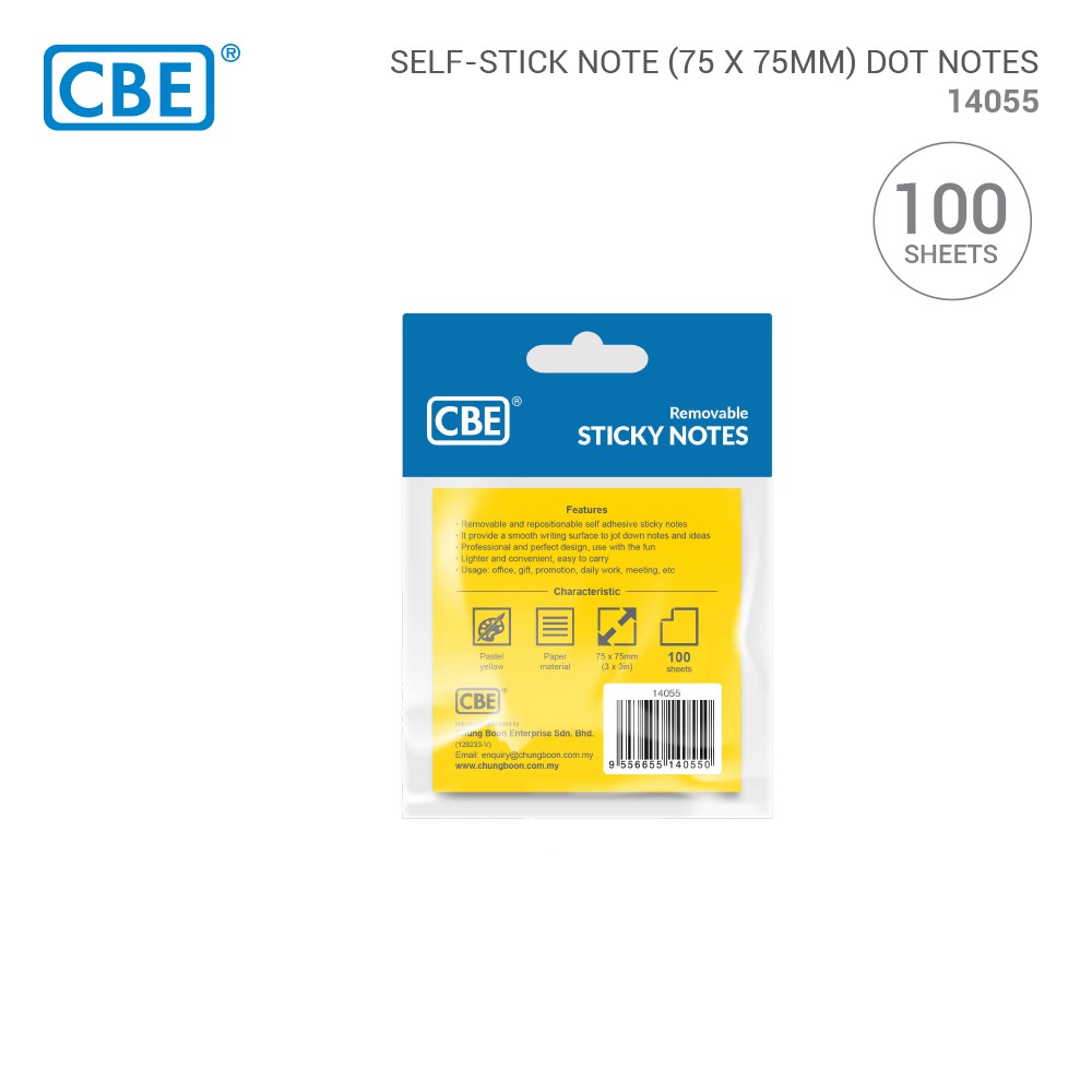 CBE 14055 Self-Stick Note DOT NOTES (75 X 75mm/ 100 Sheets)