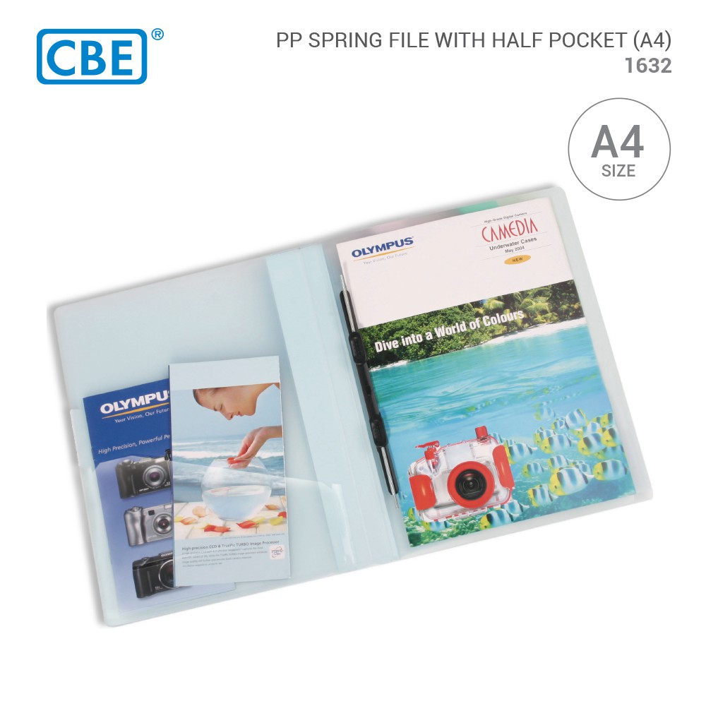 CBE 1632 PP Spring File with Half Pocket A4 | Random Colours
