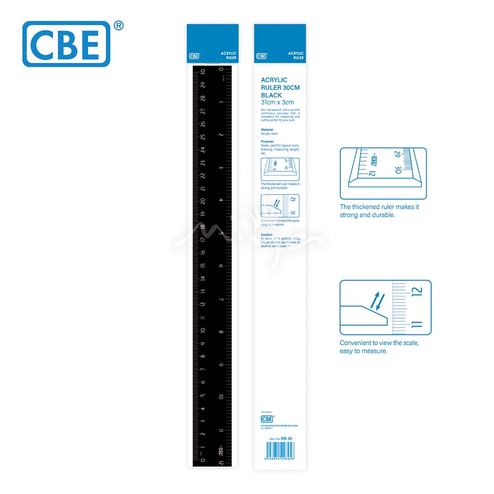 CBE Acrylic Ruler "BLACK" 15CM | 20CM | 30CM