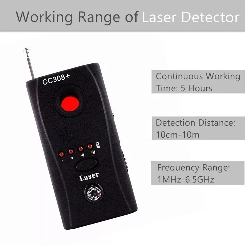 CC308 Full Range Anti Spy Bug Detector Mini Wireless Camera Hidden Signal GSM Device Finder Scanner Protect Security