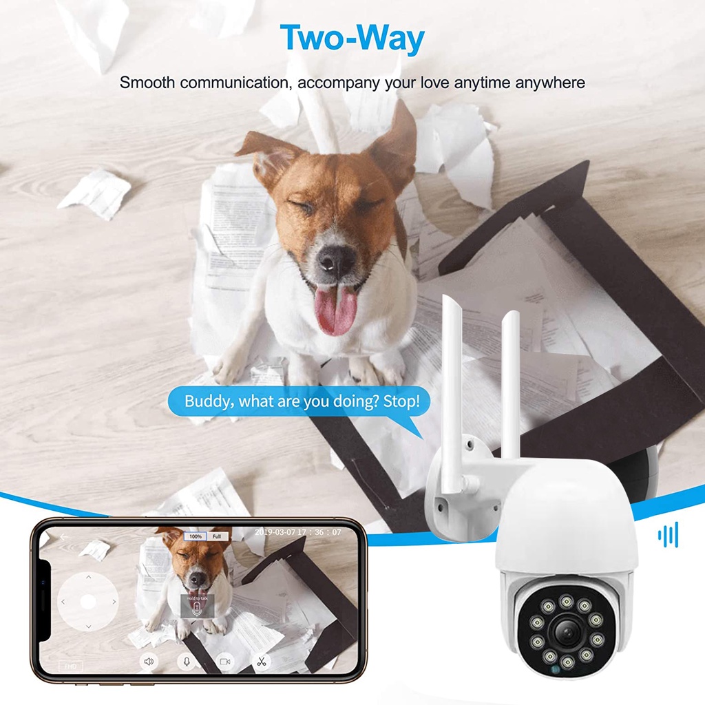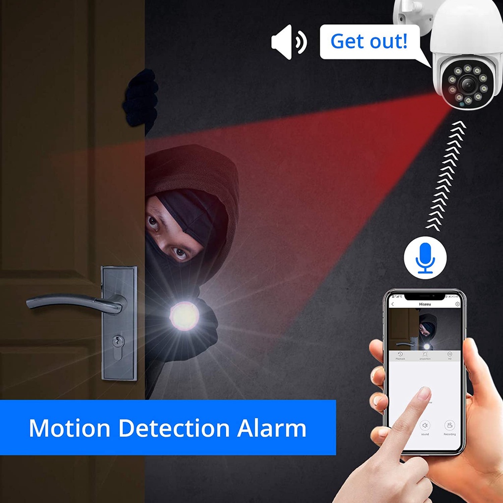 CCTV Outdoor PTZ WIFI IP Security Camera 1080P FHD Night Vision Waterproof & Weatherproof V380 Pro App , AP Hotspot