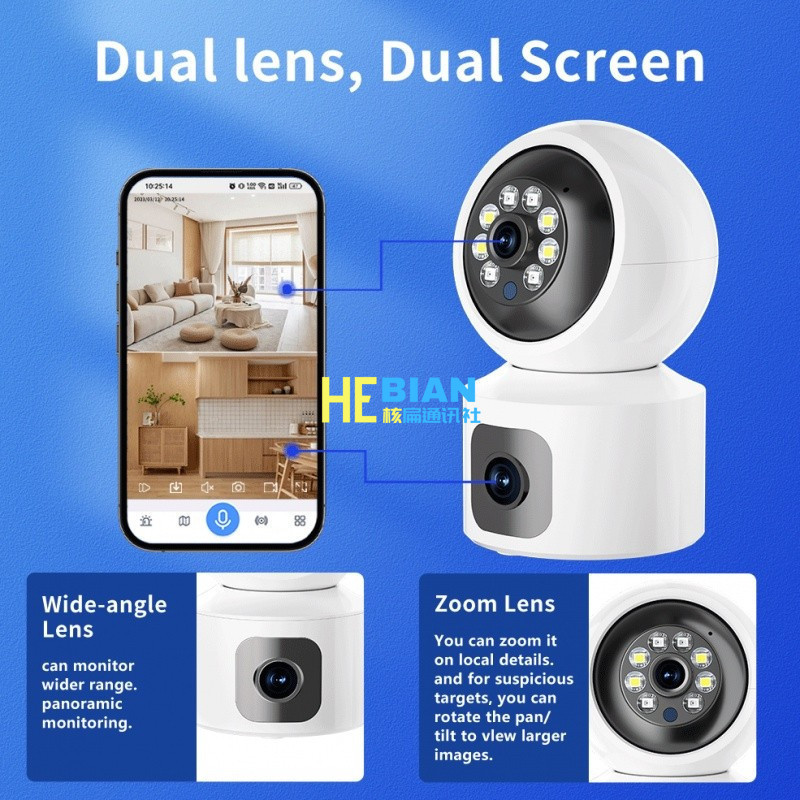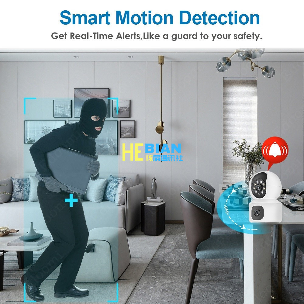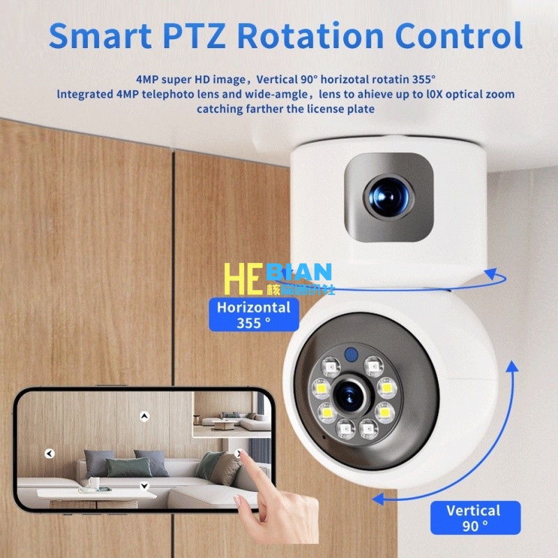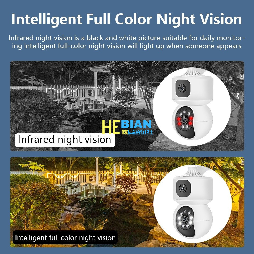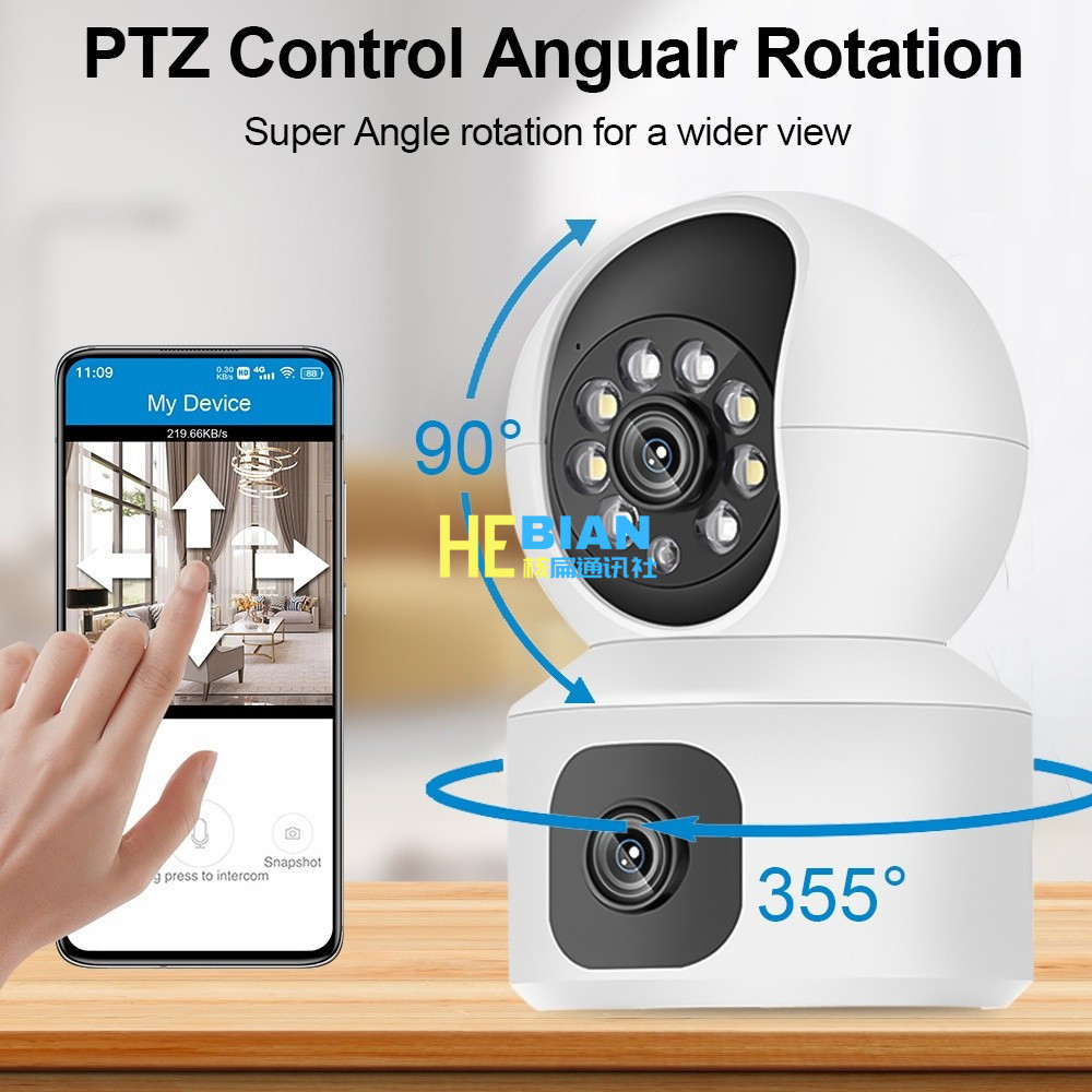 CCTV Security Camera 2025 Latest Model 4MP 2K Resolution 2.8mm Dual Lens Body Camera Screens Indoor PTZ 360 Rotatable Wireless WIfi CCTV Camera with