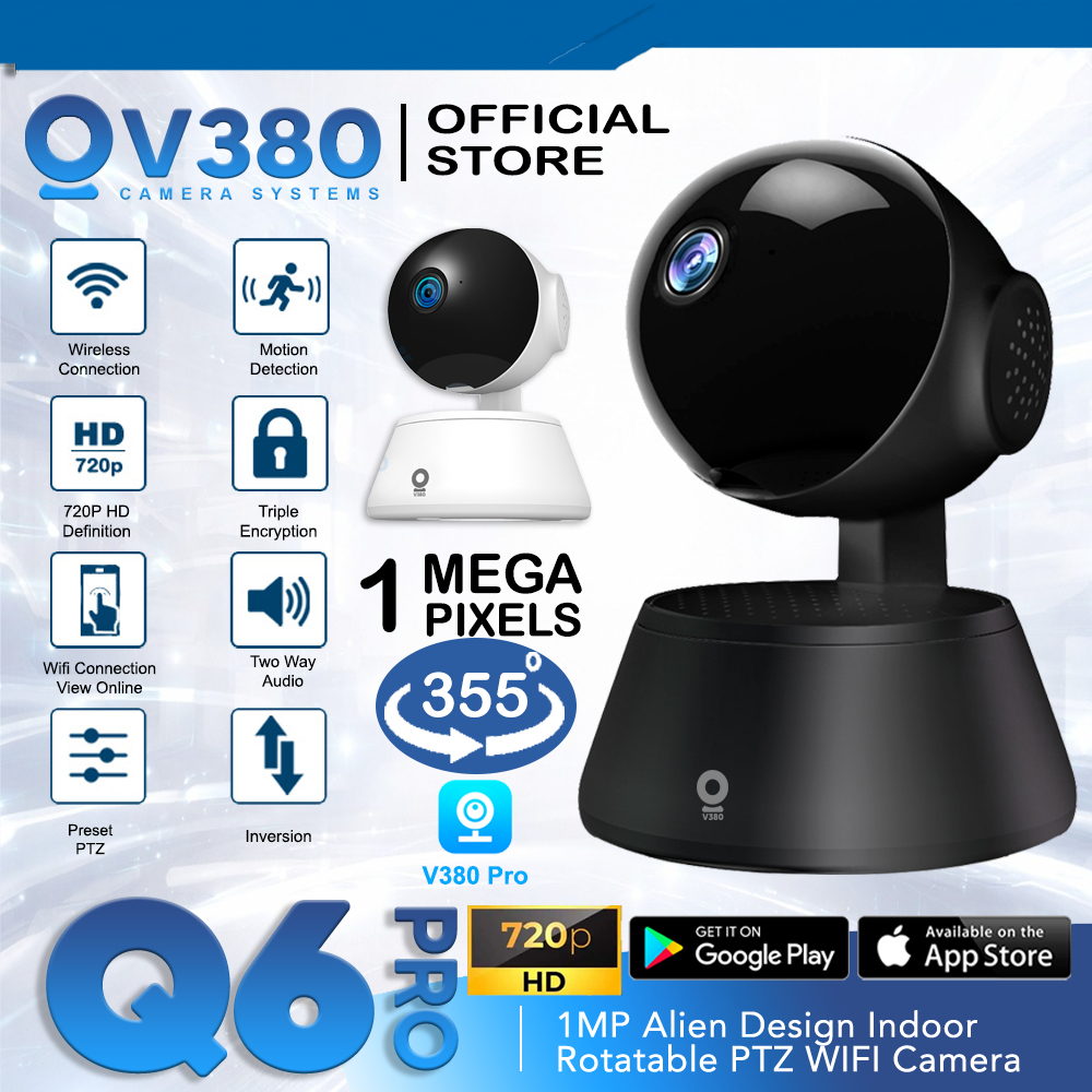 CCTV V380 Q6Pro (Black) 1MP | Alien Design Indoor Rotatable PTZ WIFI IP Camera