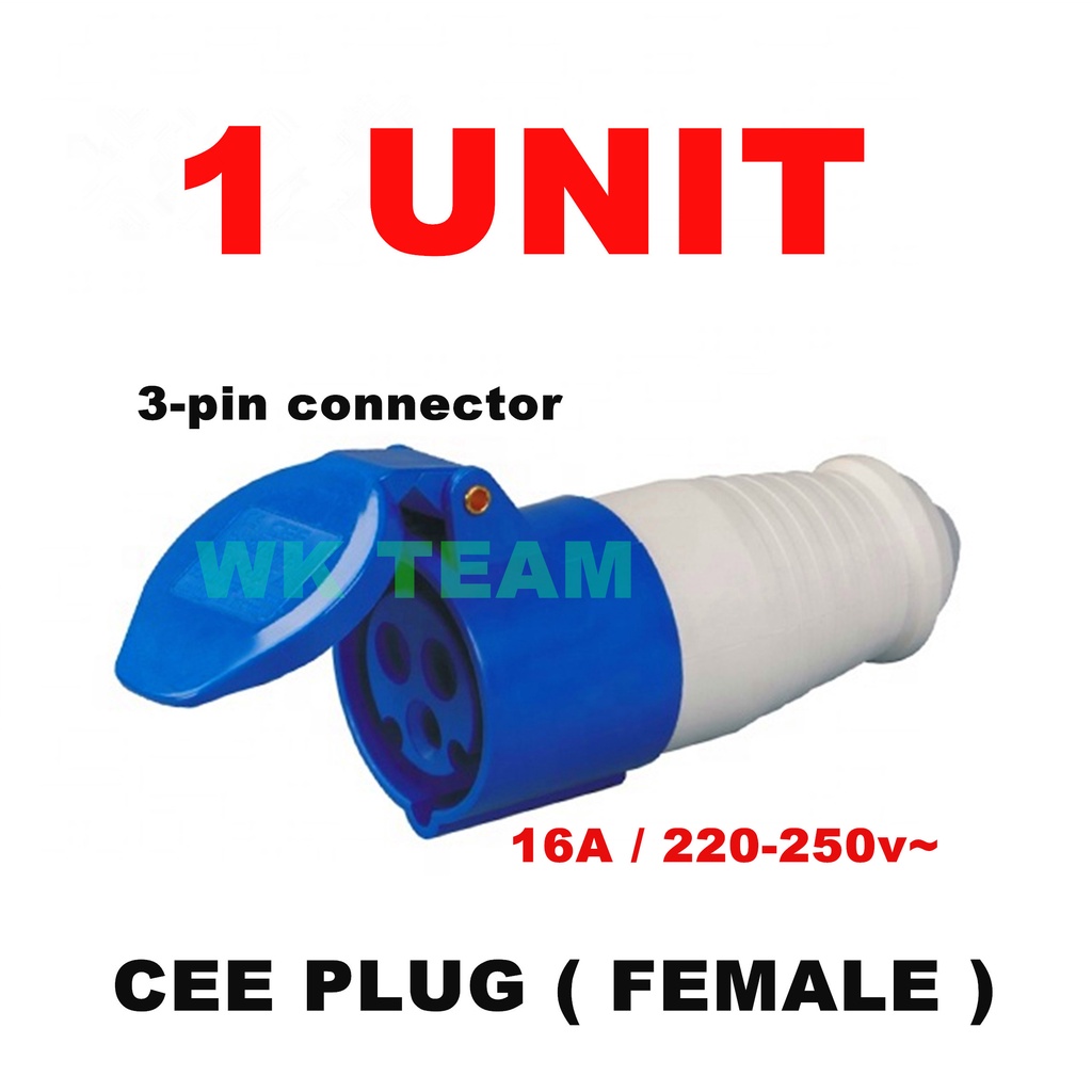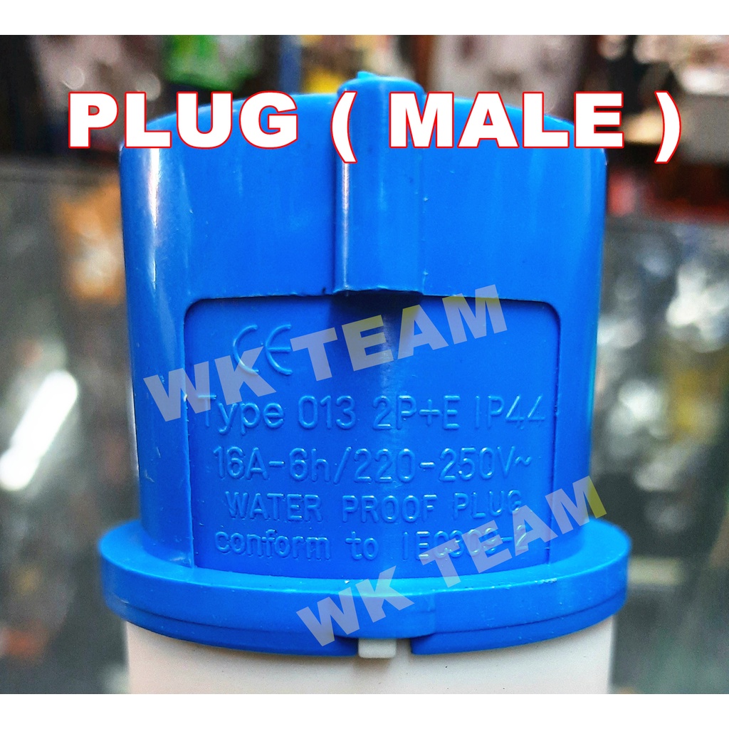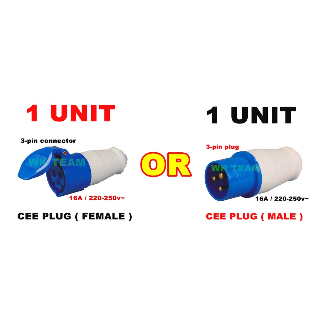 CEE Plug Blue 3 pin 16A / 220v ~ 250v / Industrial Connector Socket Female Male / Penyambung Sambungan Soket Biru 3-pin