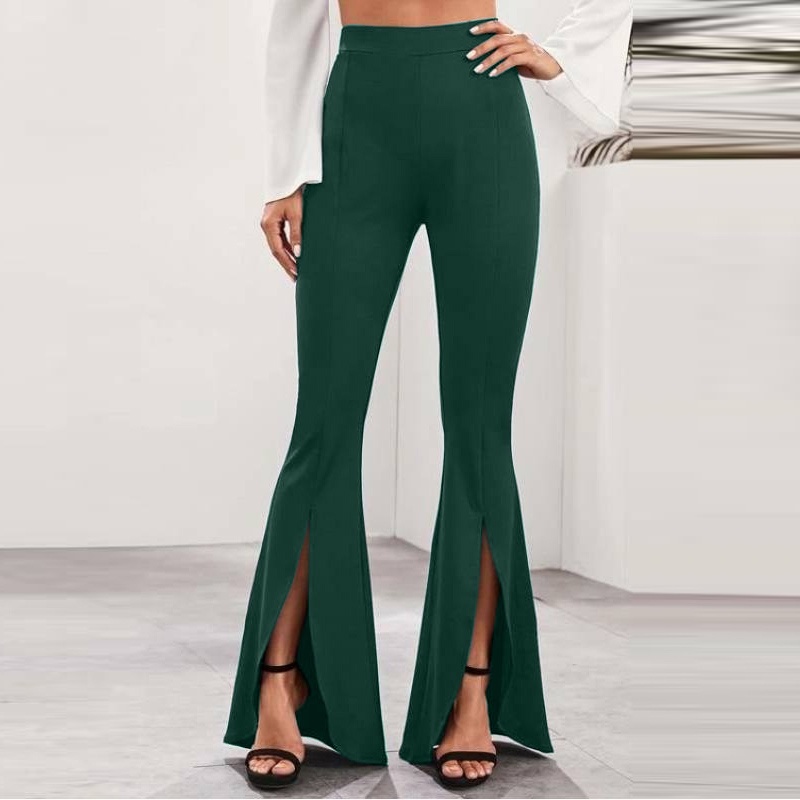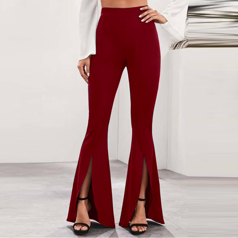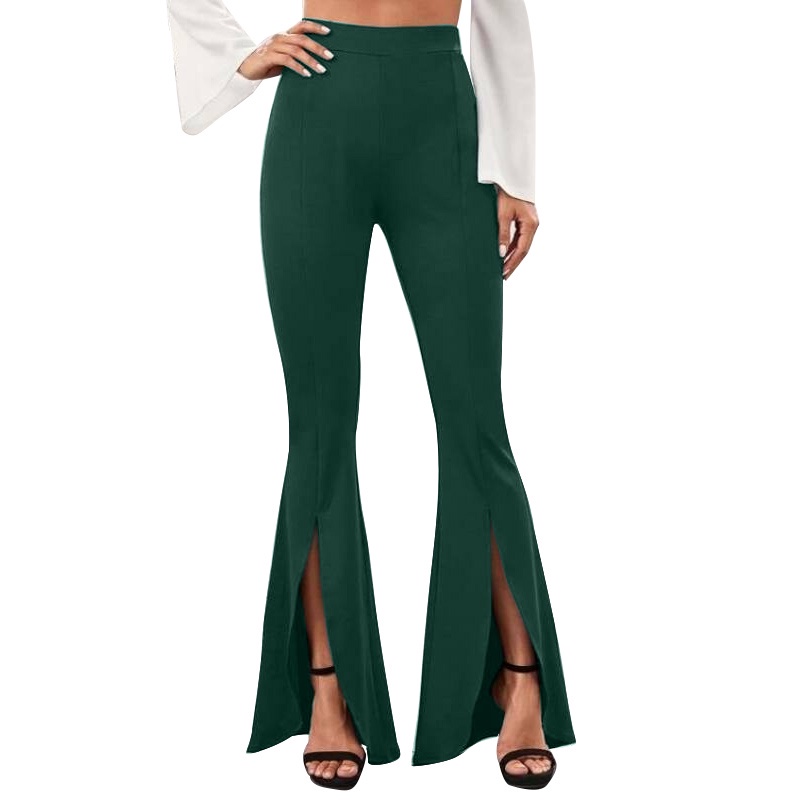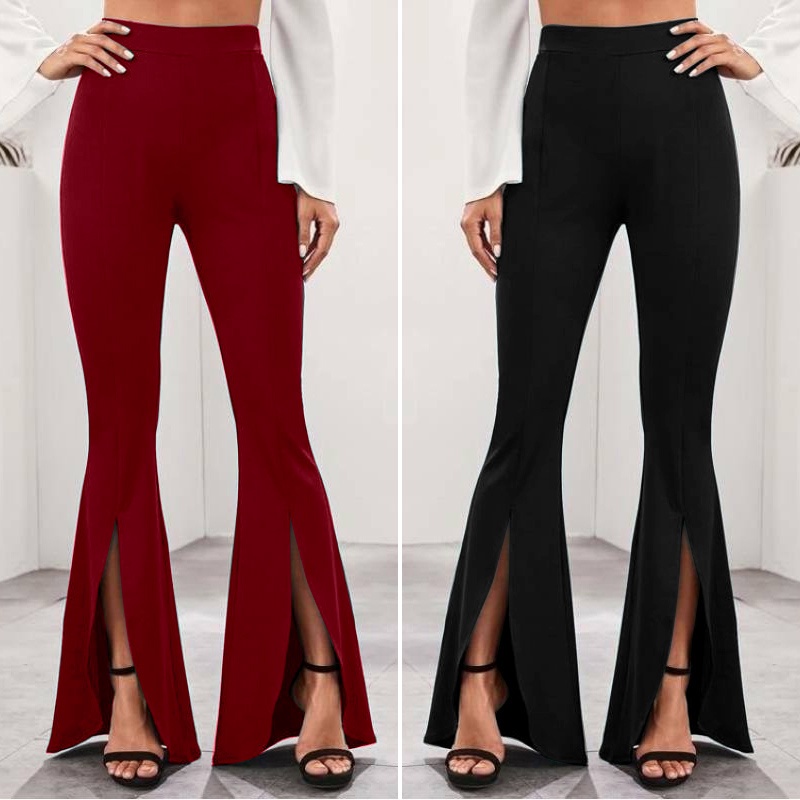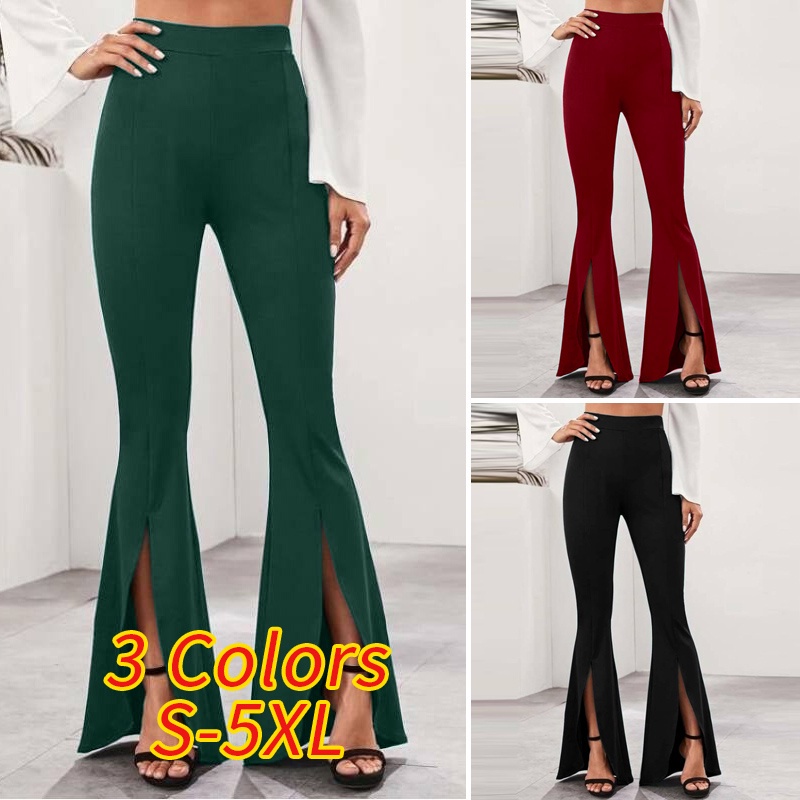 CELMIA Women Flared Elastic High Waist Split Elegant Casual Wide Leg Trousers