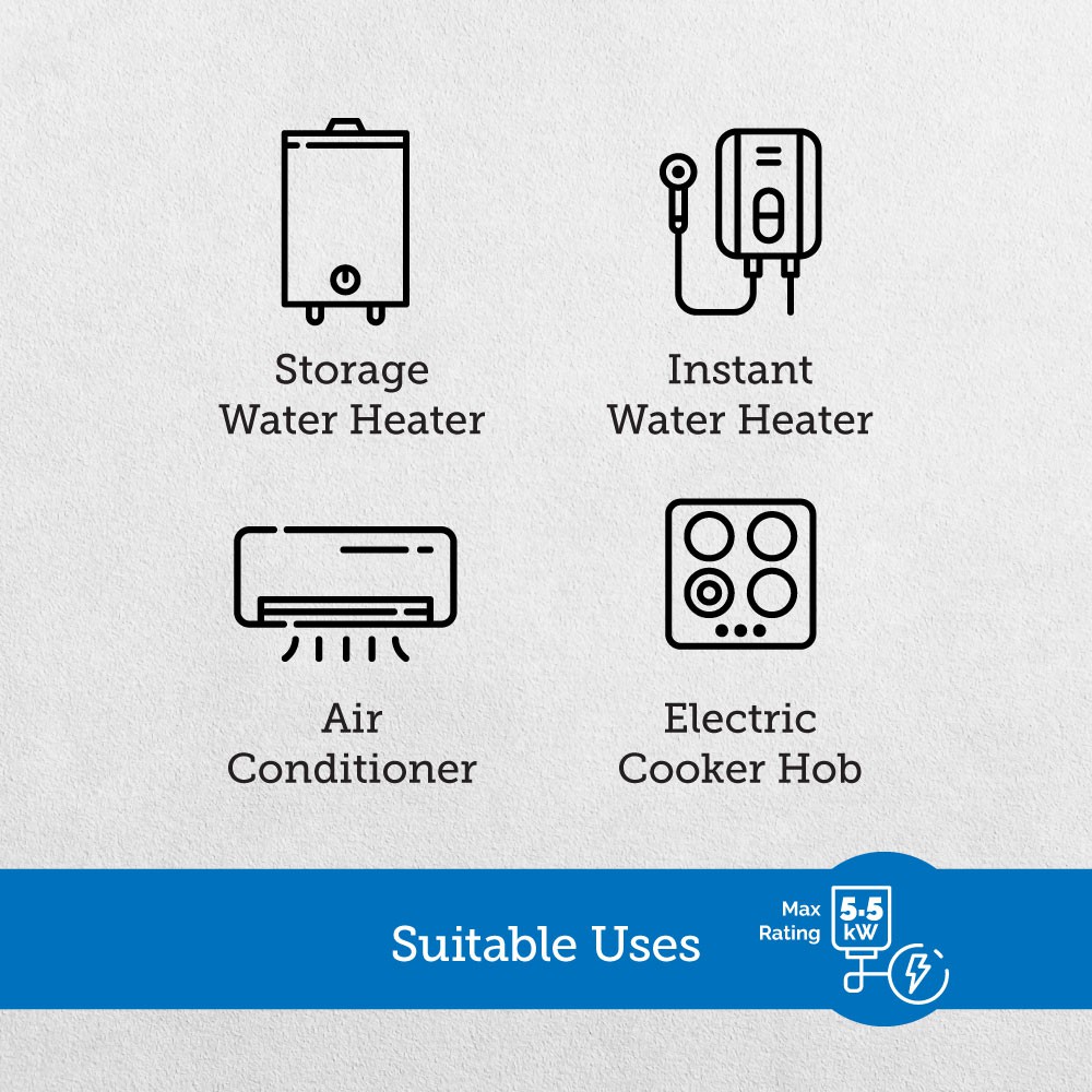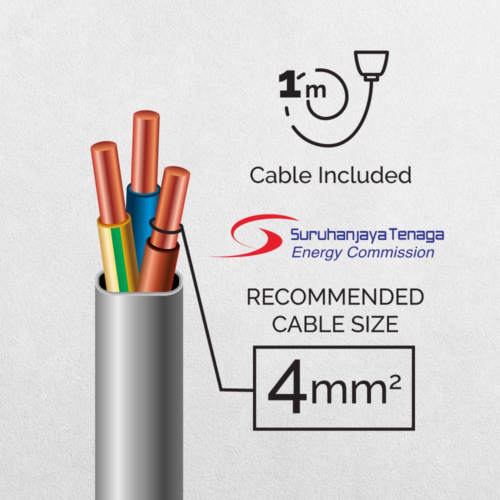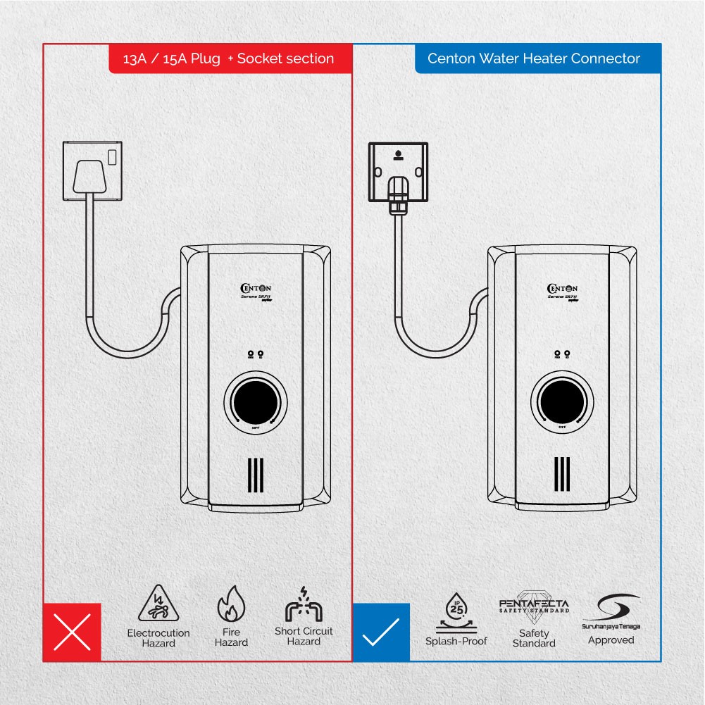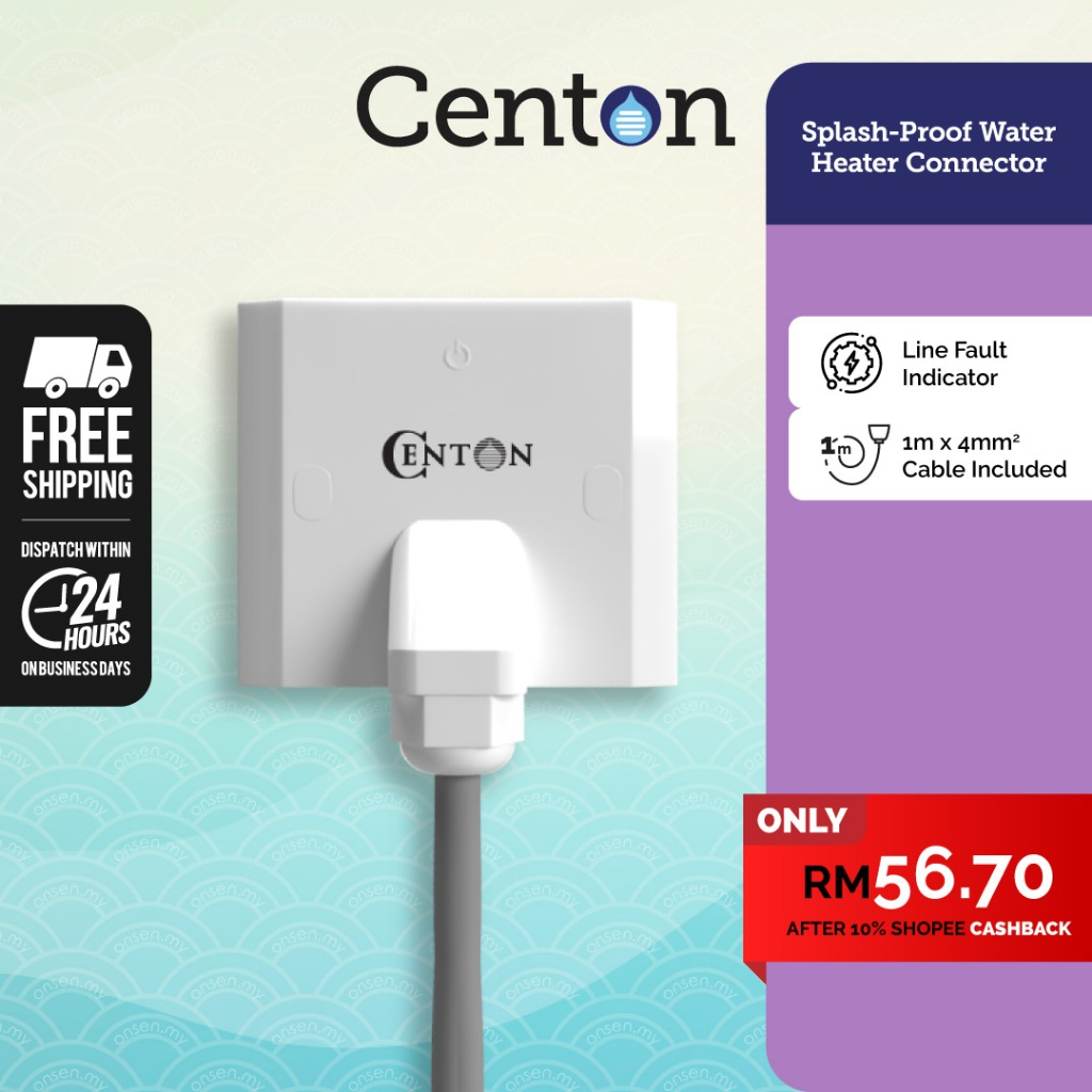 CENTON Water Heater Connector with Line Fault Indicator (with 1 meter, 4mm² diameter, 3 core cable)