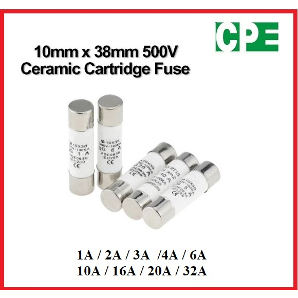 CERAMIC CARTRIDGE FUSE LINK 10mm x 38mm 1A, 2A, 3A, 4A, 6A, 10A, 16A, 20A, 32A 500V RO15