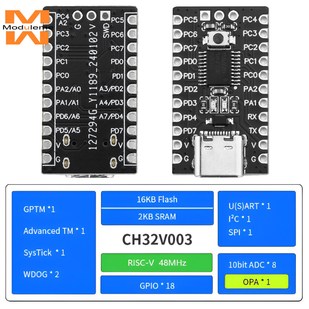 CH32V003F4P6 Core Board Development Board CH32V003 Microcontroller Module RISC-V Processor TYPE-C Interface