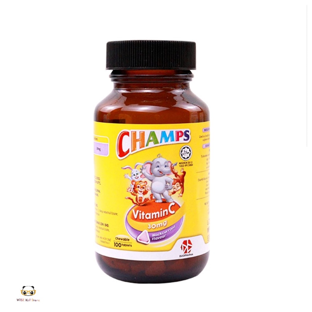 CHAMPS VITAMIN C KIDS 30MG 100 TABLET CHEWABLE BLACKCURRANT LYSINE| MULTIVITAMIN ORIGINAL WELL BEING KID SUPPLEMENTT