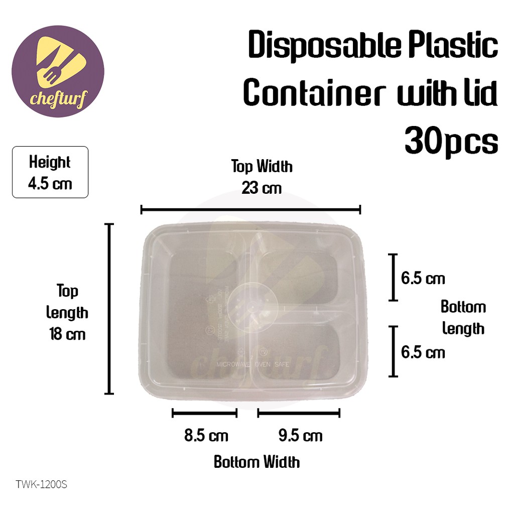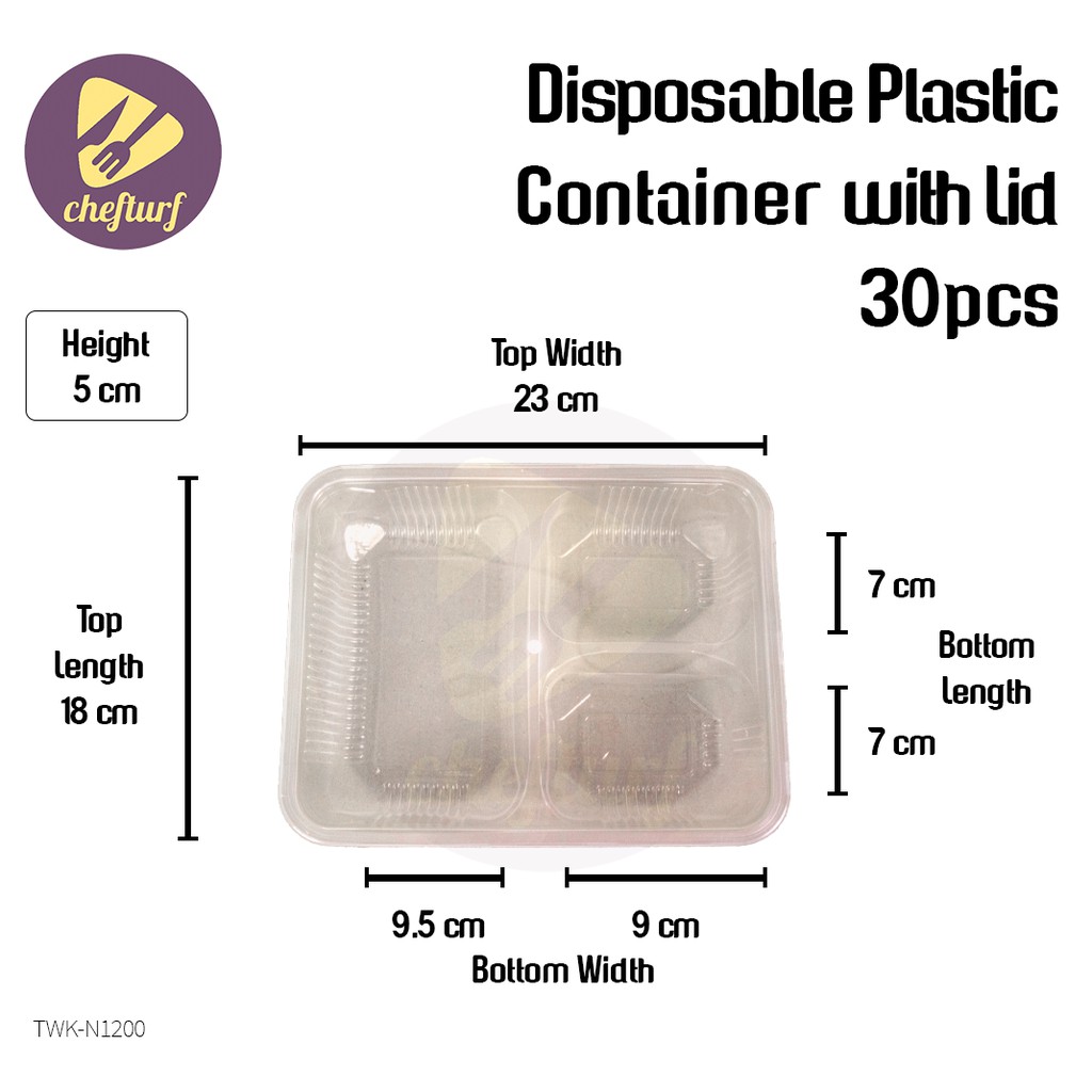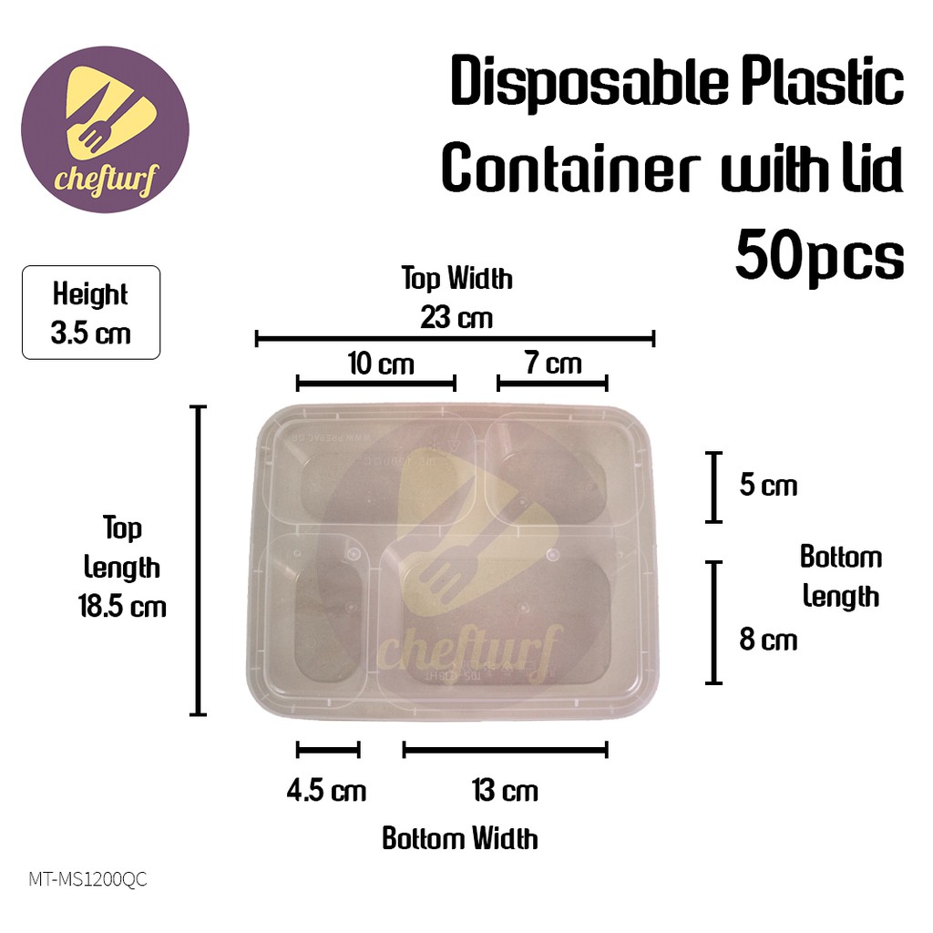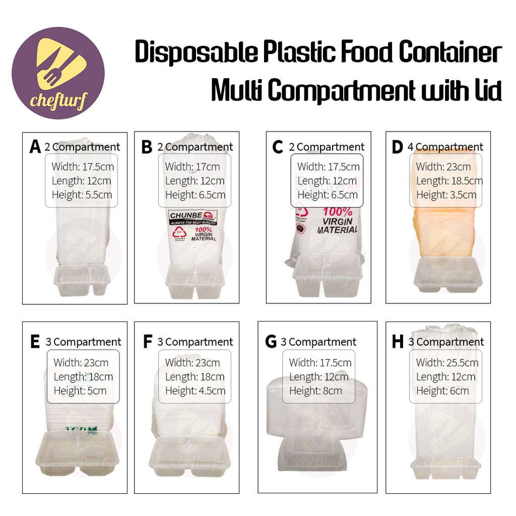 CHEFTURF KITCHEN - DISPOSABLE PLASTIC MULTI COMPARTMENT CONTAINER WITH LID / BEKAS MAKANAN PLASTIK BANYAK BAHAGIAN