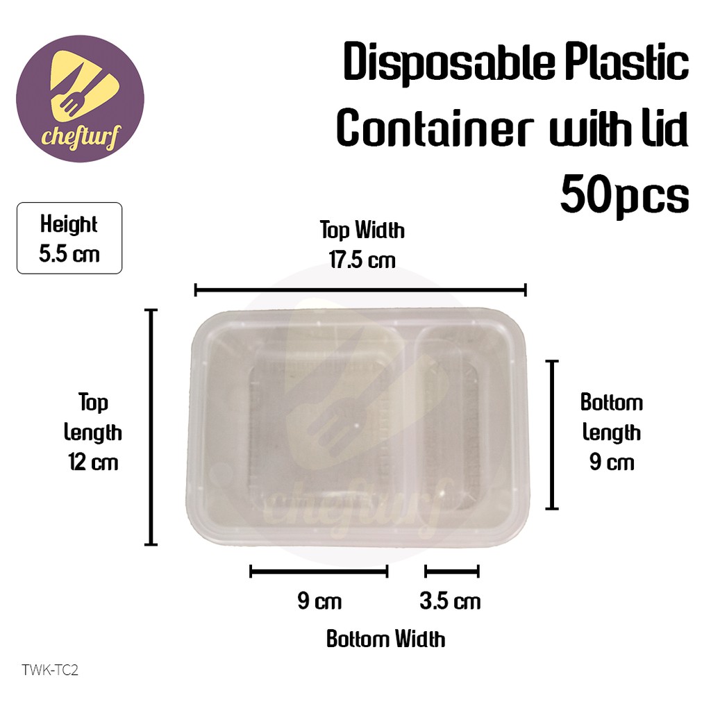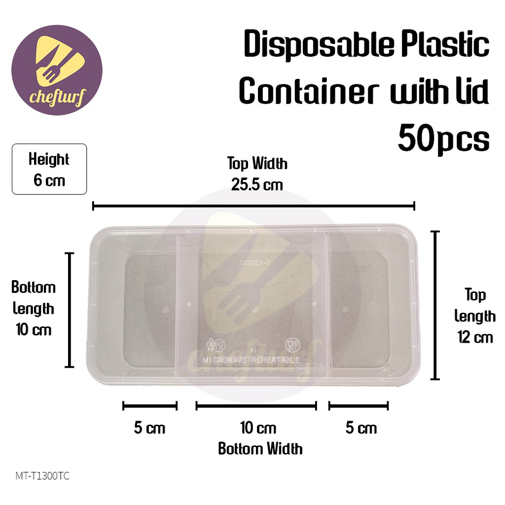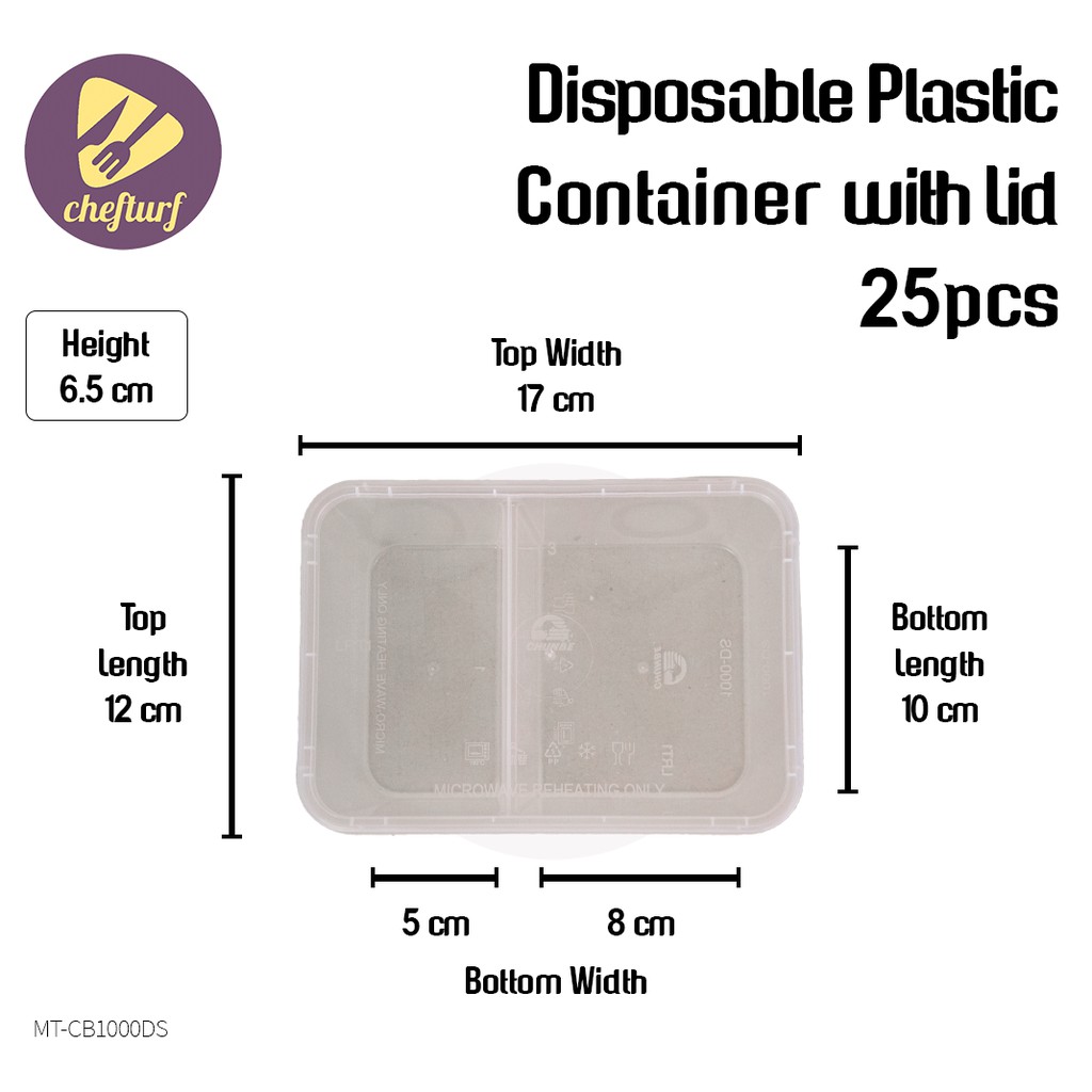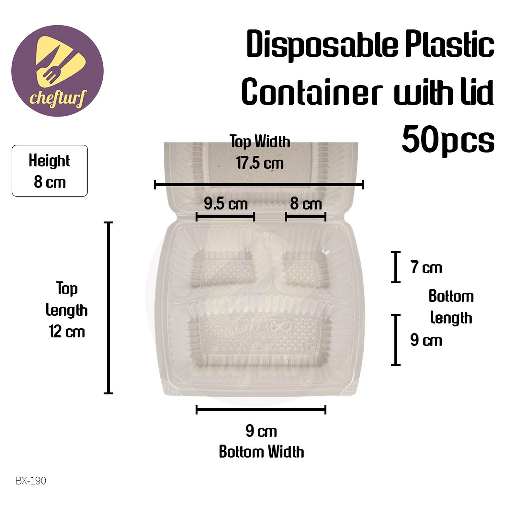 CHEFTURF KITCHEN - DISPOSABLE PLASTIC MULTI COMPARTMENT CONTAINER WITH LID / BEKAS MAKANAN PLASTIK BANYAK BAHAGIAN