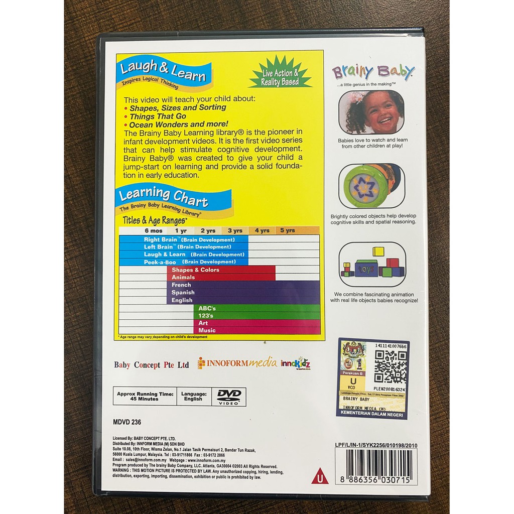 CHILDREN DVD BRAINY BABY LAUGH & LEARN *INSPIREES LEARNING AND DISCOVERY* AGES 6 ~ 36 MONTHS