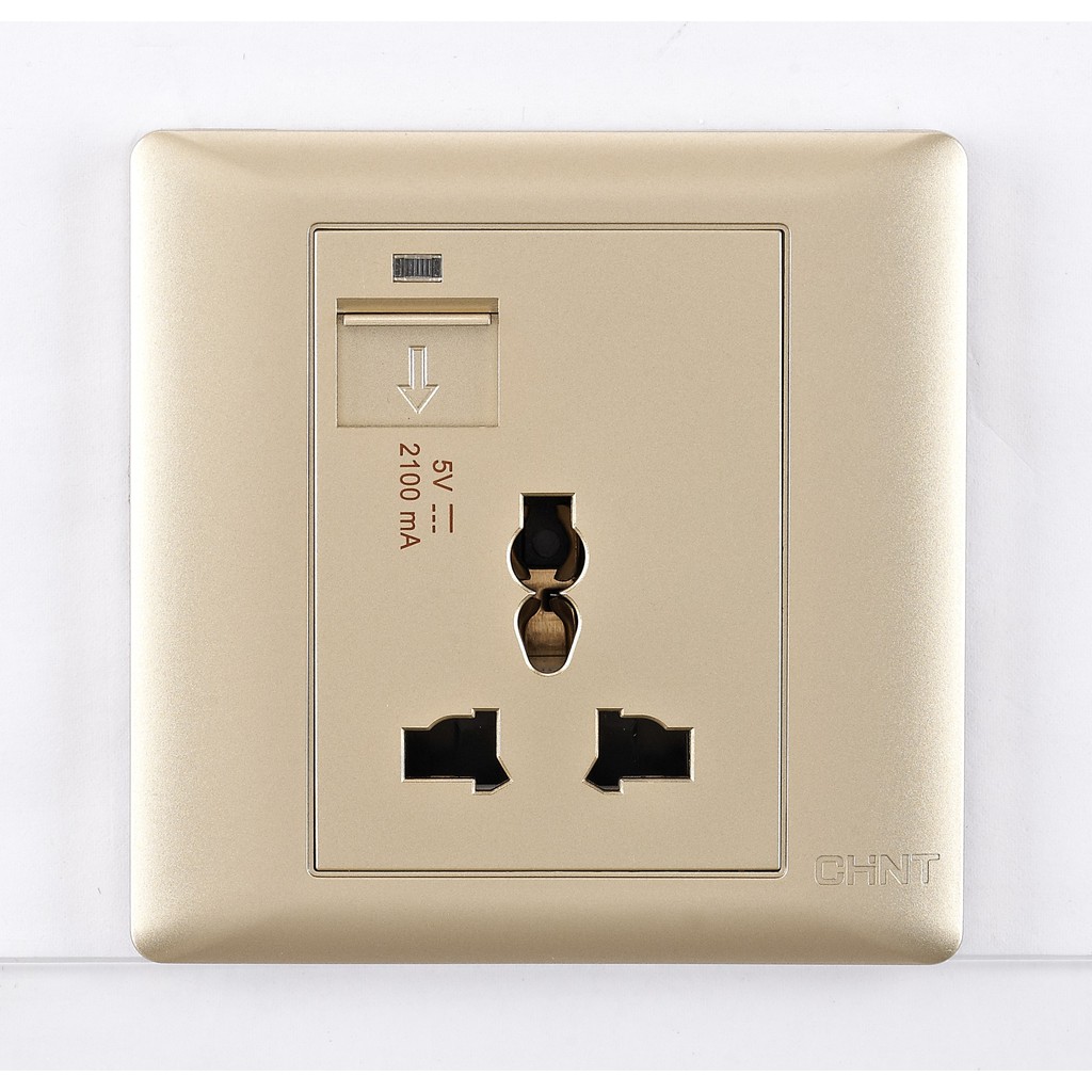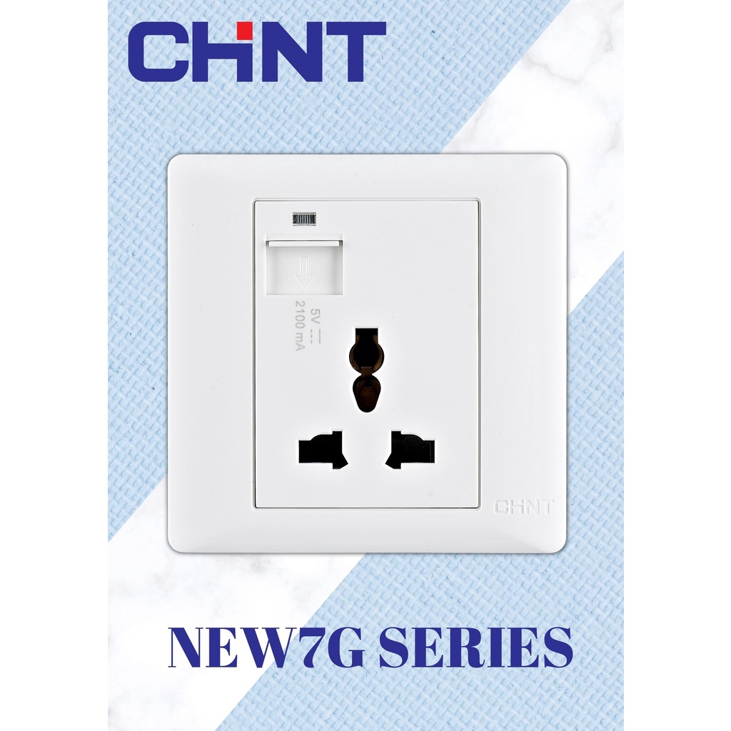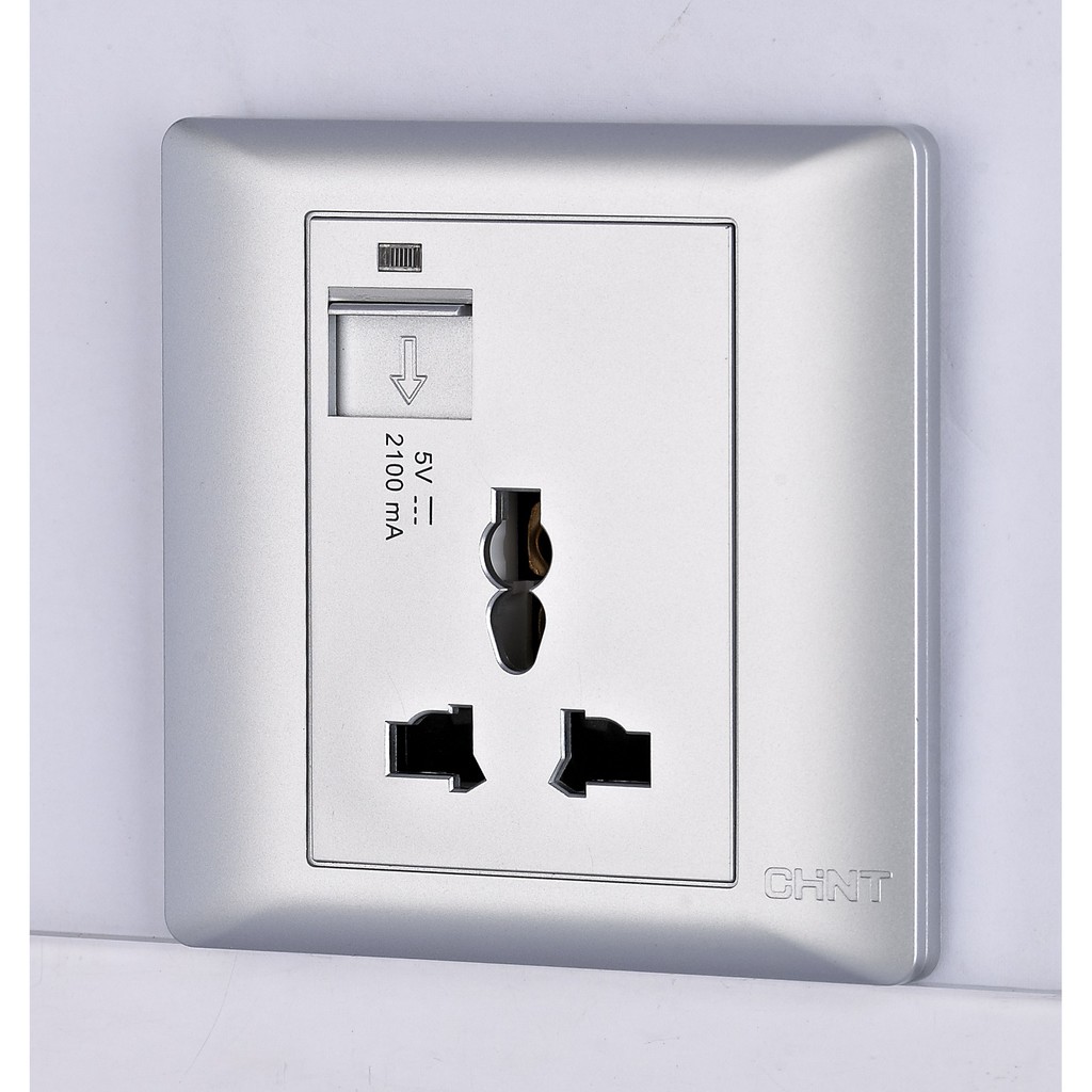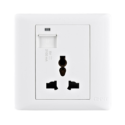 CHINT 10A 250V 1 Gang 3 Pin Universal Socket c/w 2100mA 5V USB