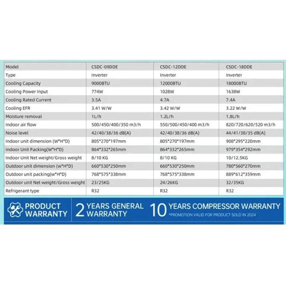 CHIQ Smart Elegant Inverter Air Conditioner CSDC-09DDE (1.0HP) CSDC-12DDE (1.5HP) CSDC18DDE (2.0HP) (Black WiFi)